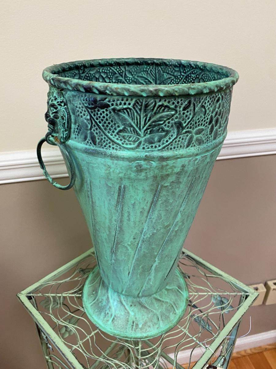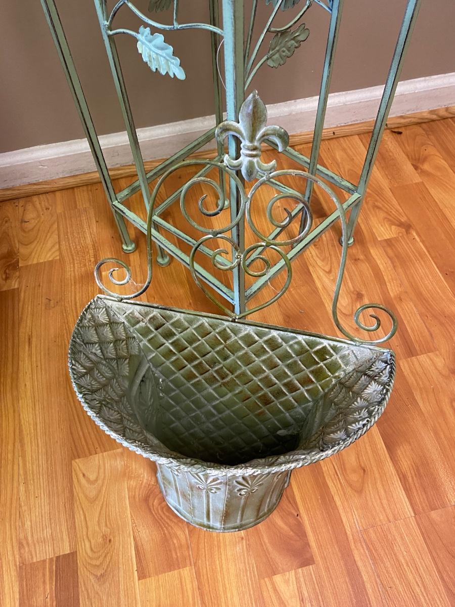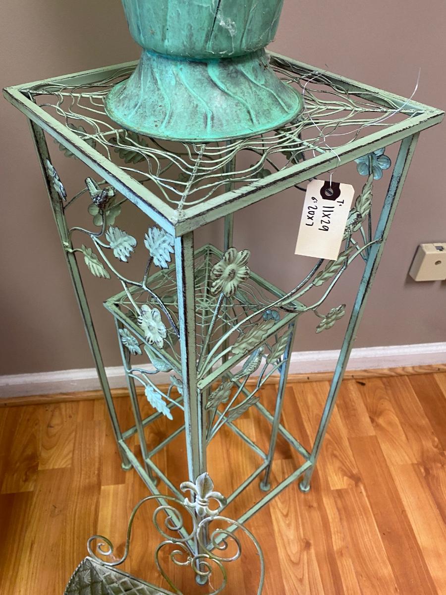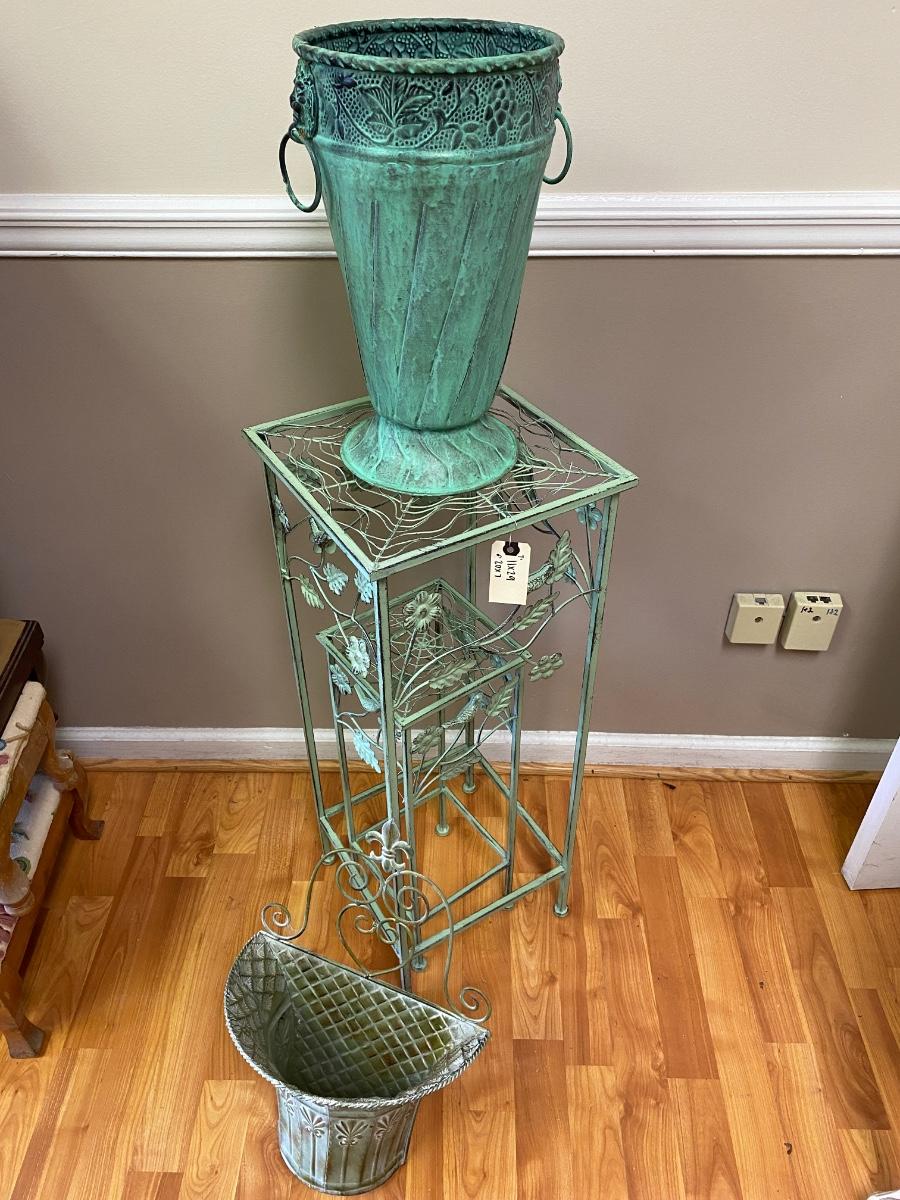 Pr of Metal Plant Stands and 2 Planters As Pictured