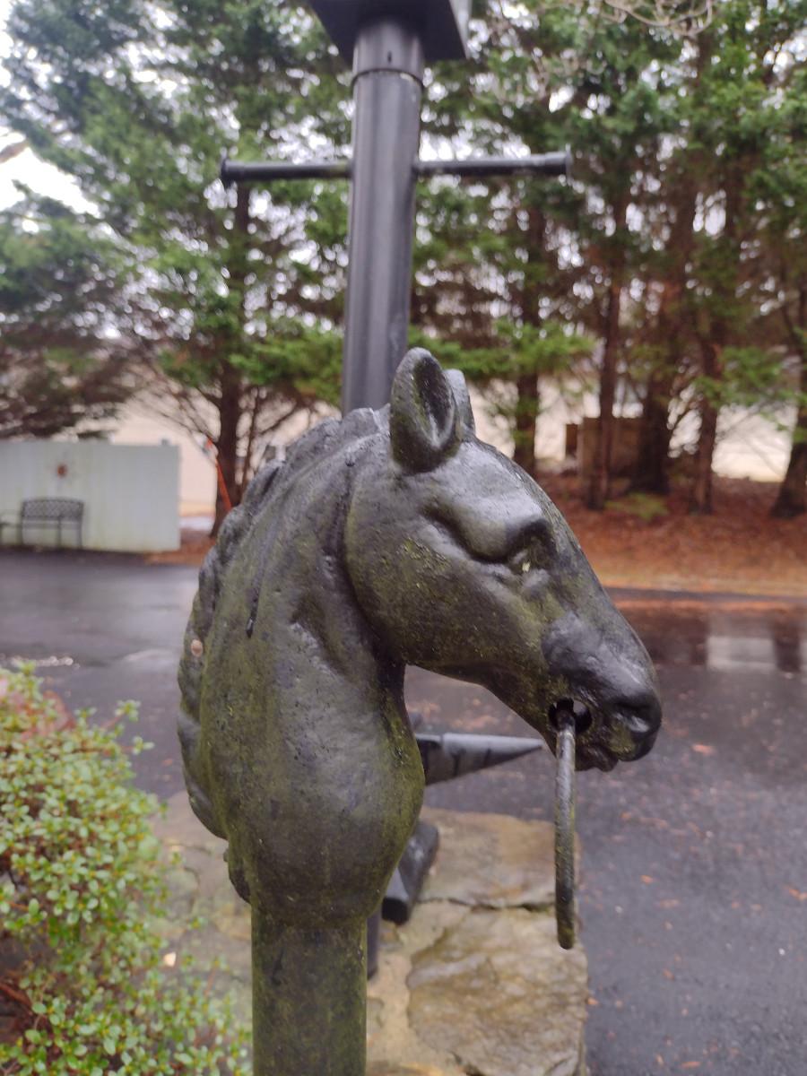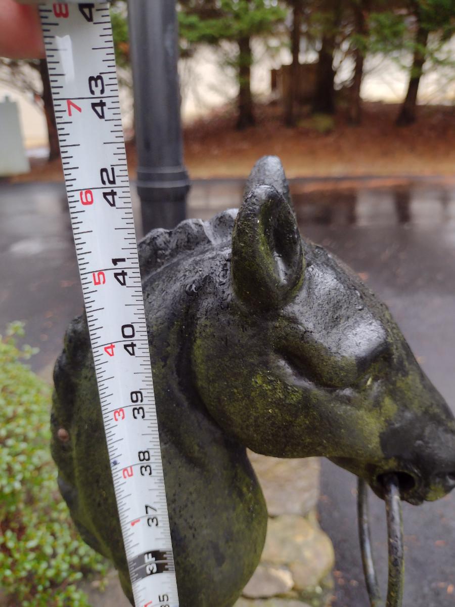 Metal Horse Head Design Hitching Post. Approx 42" tall.
