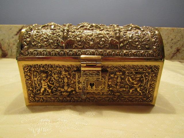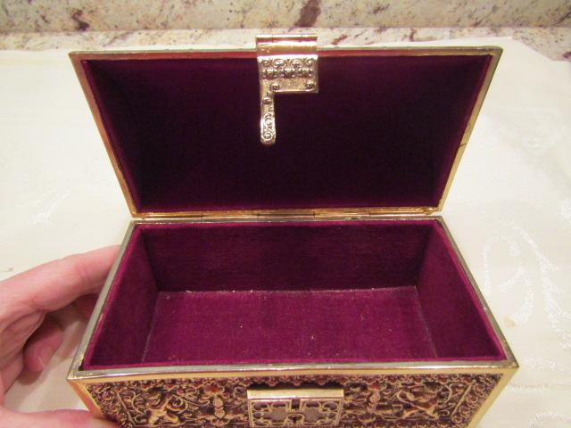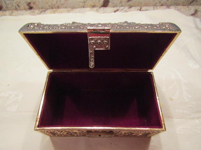 Metal Jewelry/Trinket Box with Velvet Lining. Lock does not work.