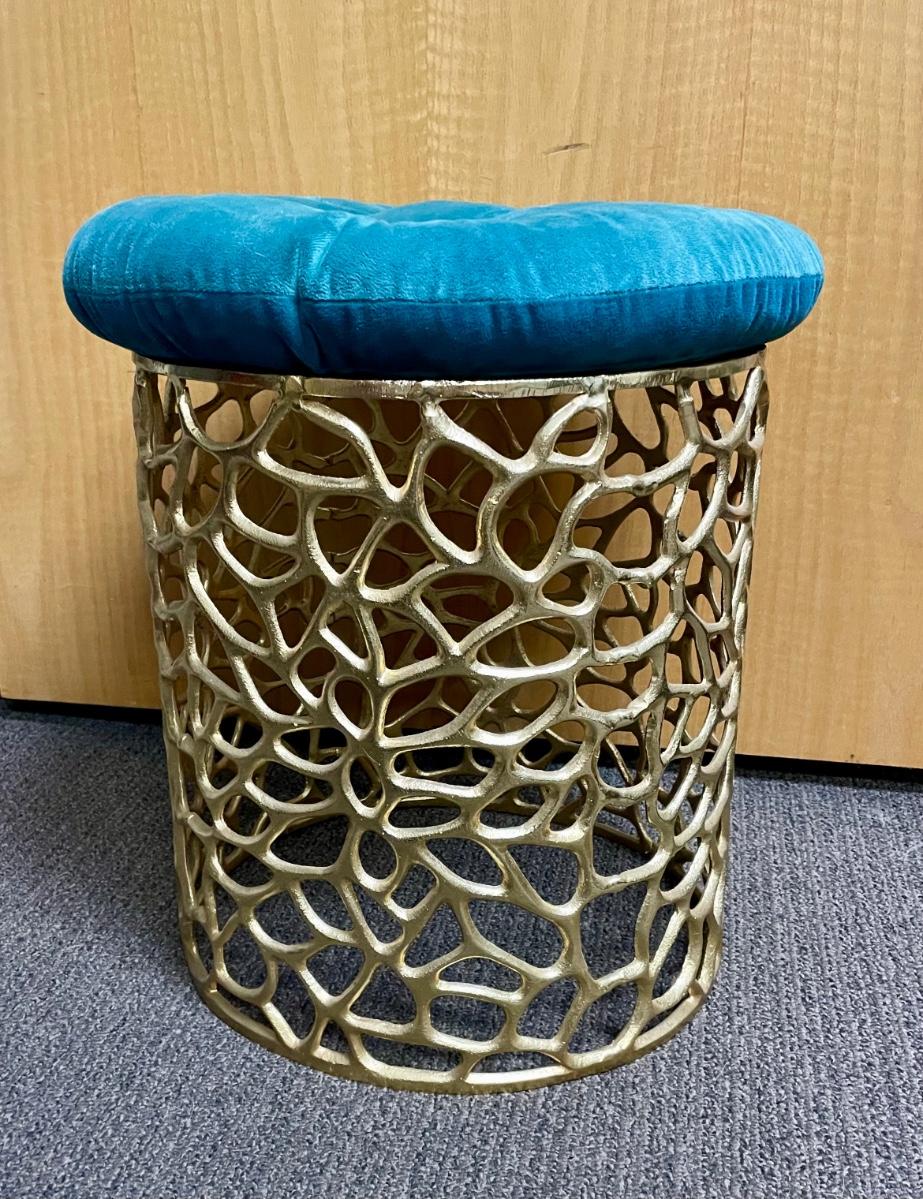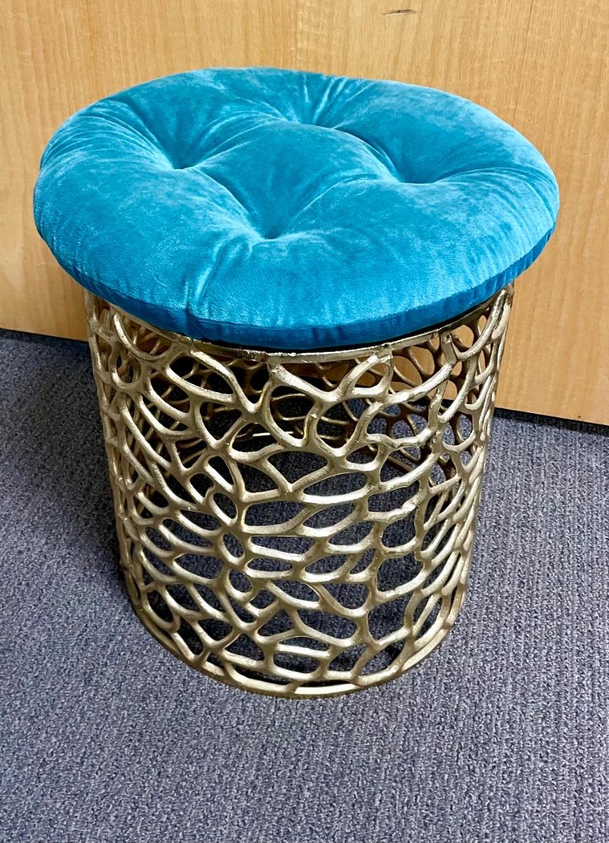 Gold Cast Metal Lattice Indoor / Outdoor Footstool / Stool / Table Base with Cushion