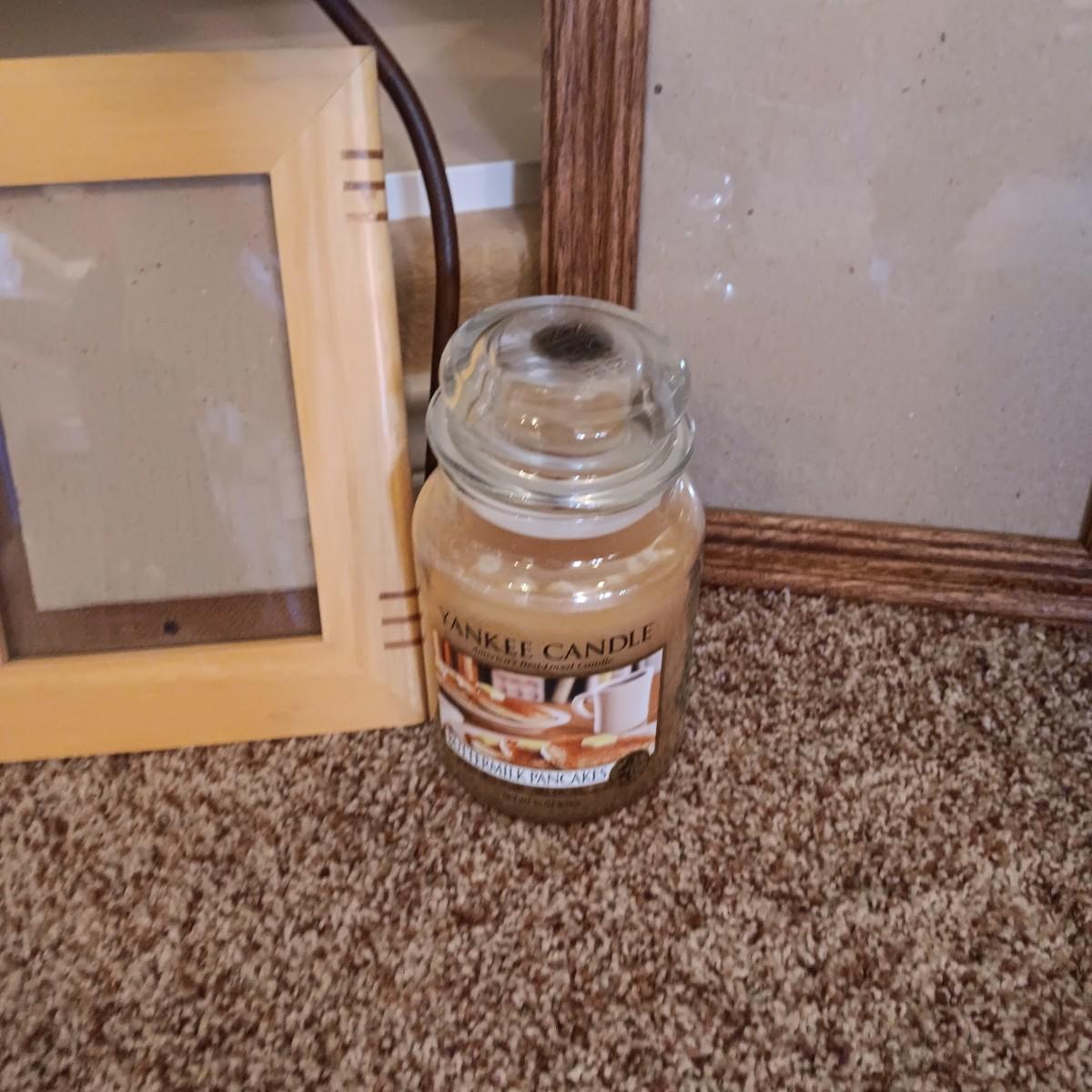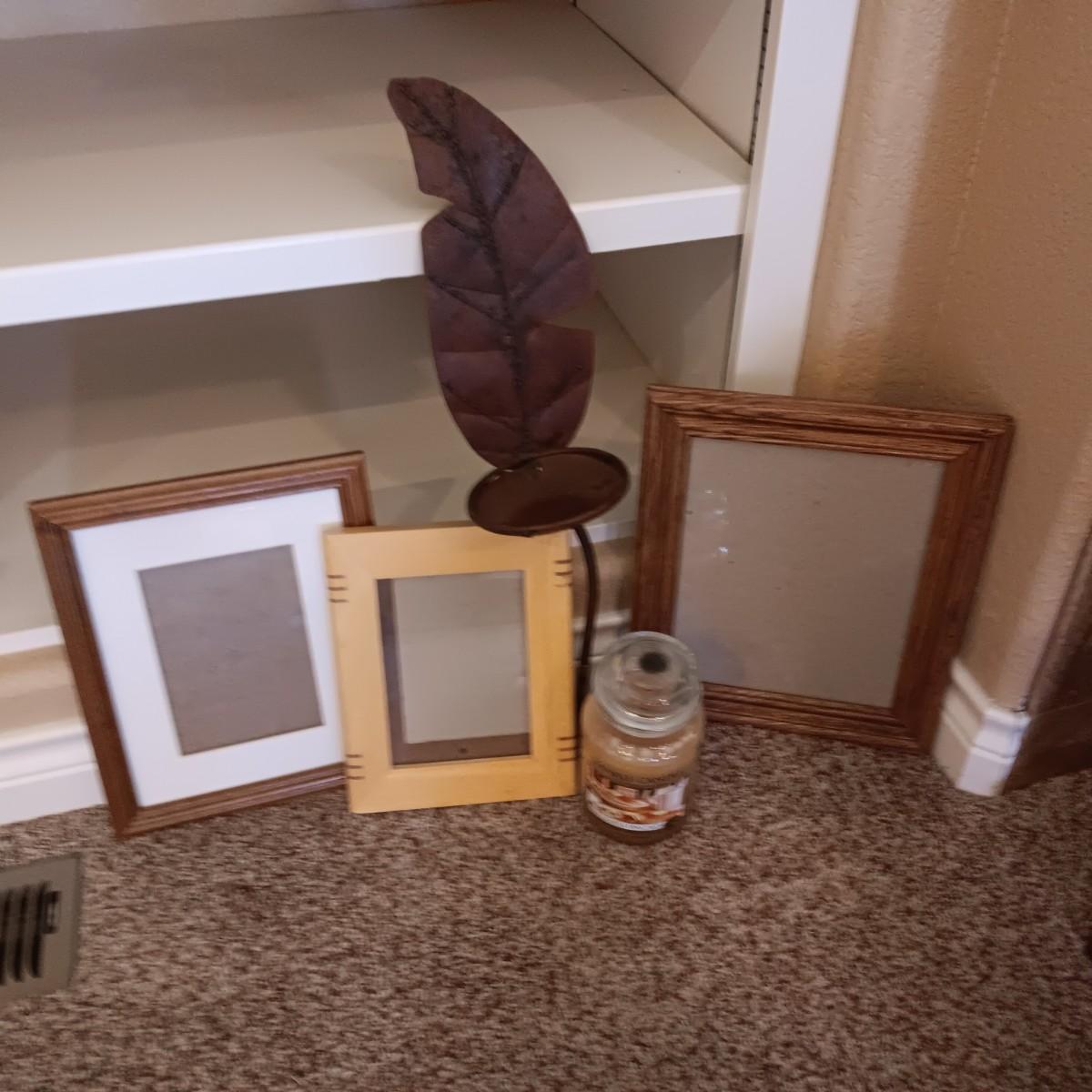METAL LEAF CANDLE WALL SCONCE, FRAMES AND A YANKEE CANDLE