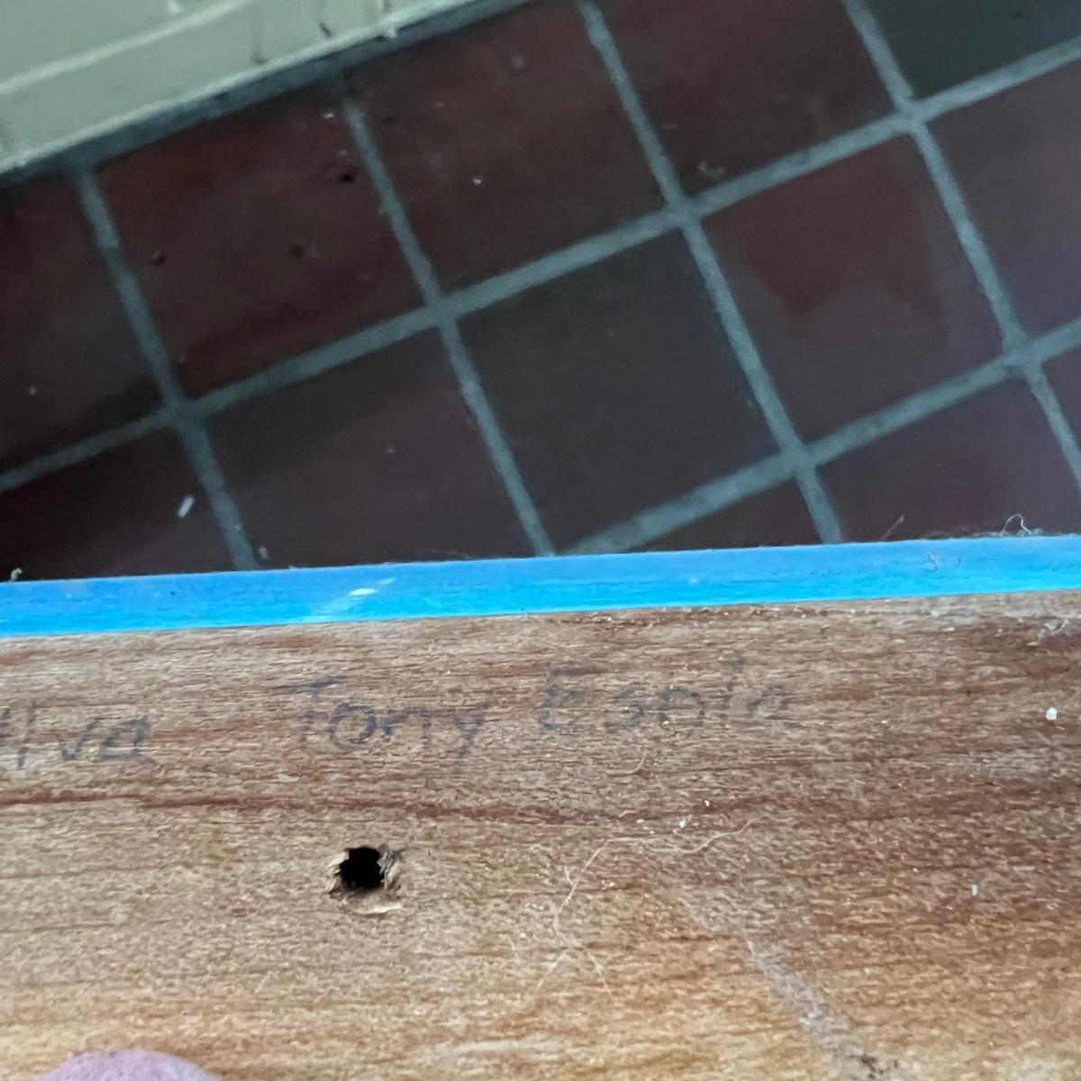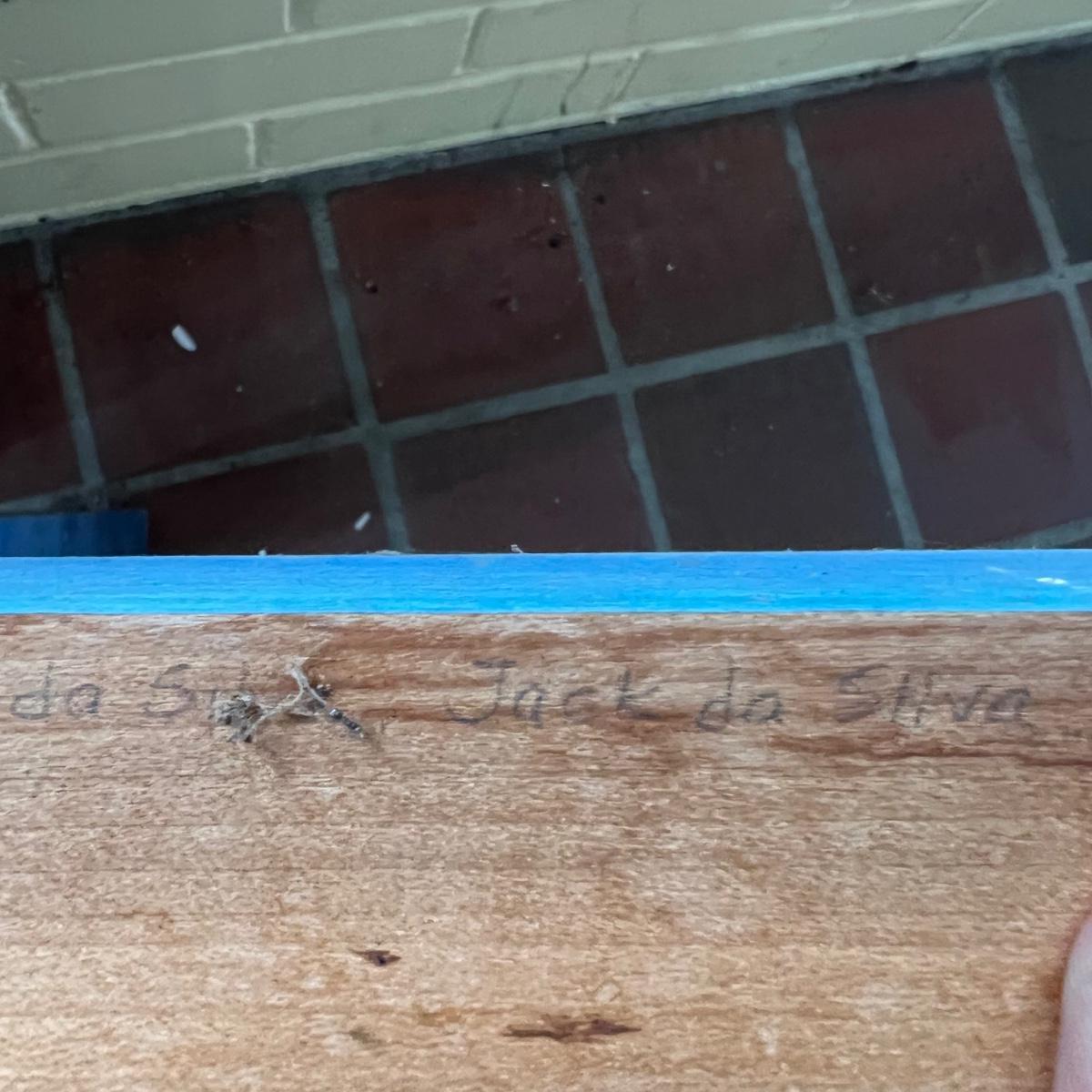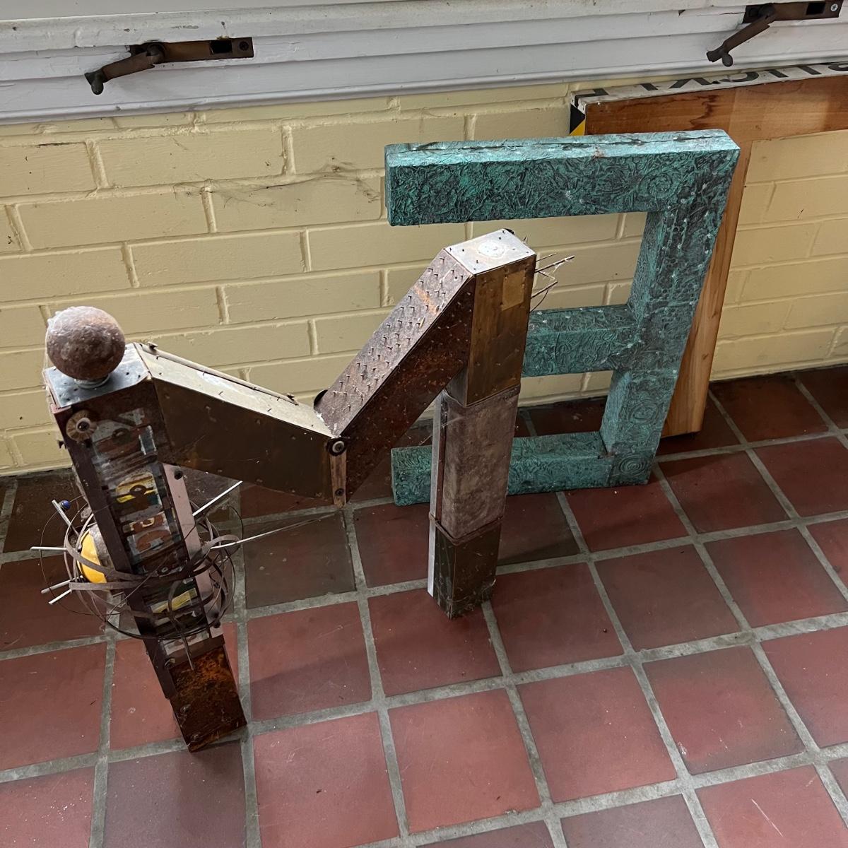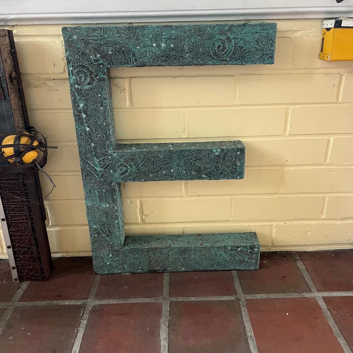 Five large letters made from wood, the M and L letters also have iron embellishments. One letter is titled “L is for Learning” and has three names - Marilyn Da Silva, Jack Da Silver & Tony Esnia.