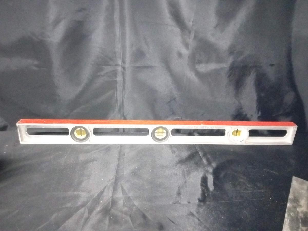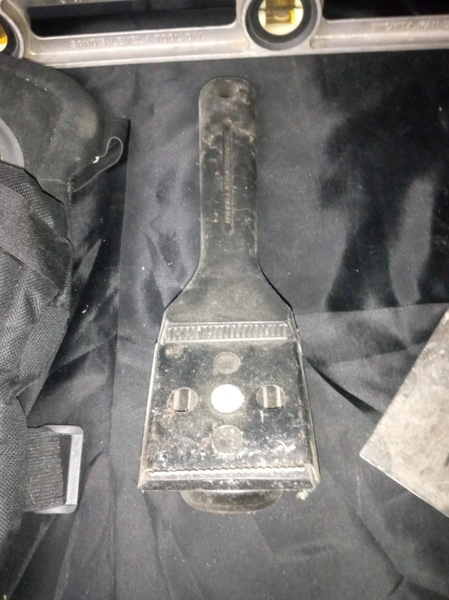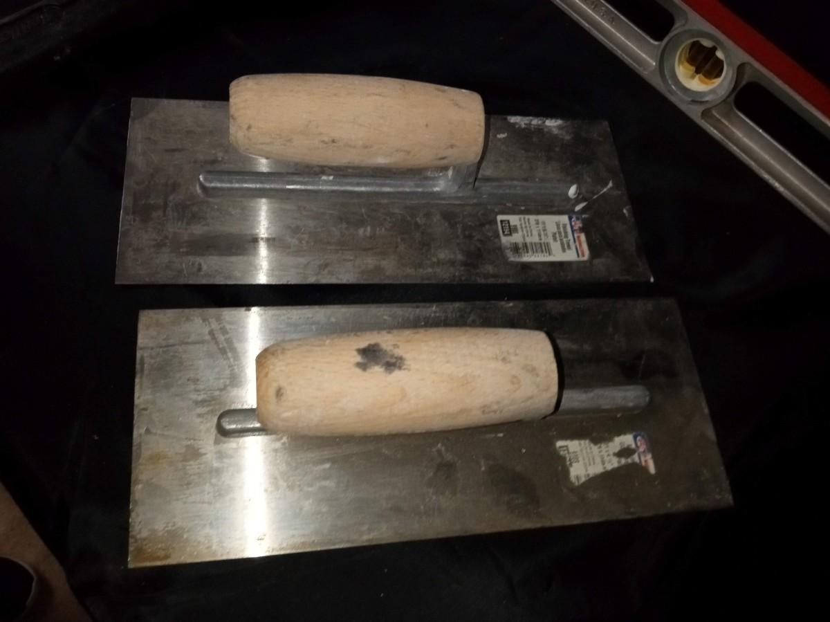 METAL LEVEL, KNEE PADS, SCRAPER AND 2 TROWELS