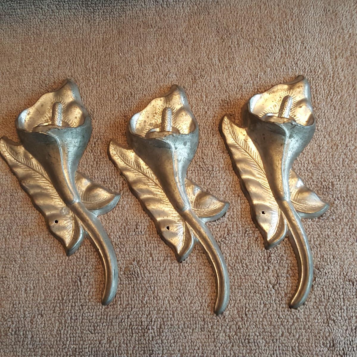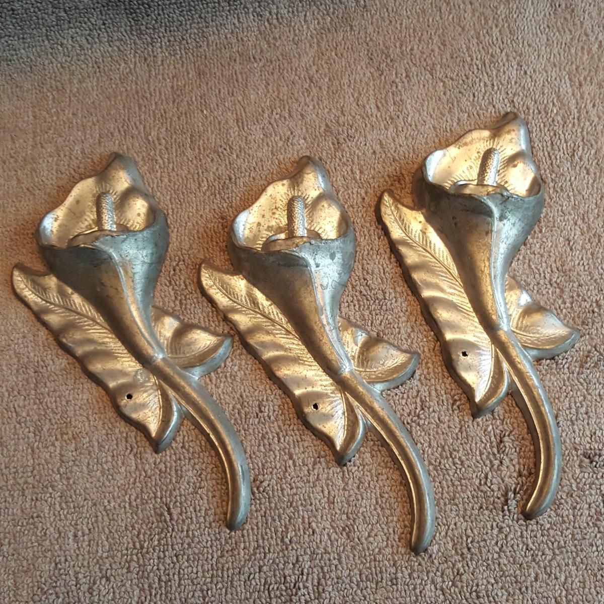This auction lot is for a set of three Metal Lily Casket Plates. These decorative items were designed to be added to caskets and/or other items to enhance them in late Victorian times. These appear to be made from either aluminum or a light pot-metal of some sort. What wonderfully creative item can you decorate with these?