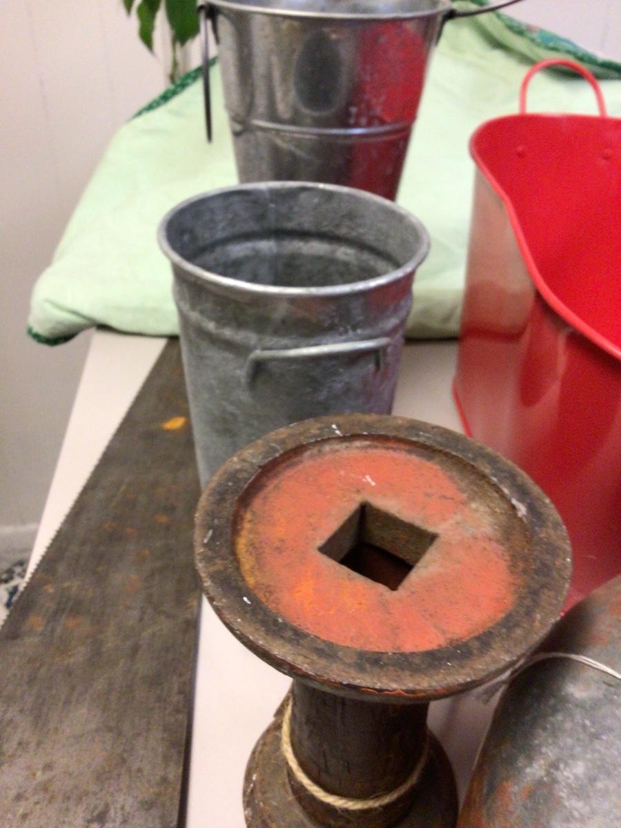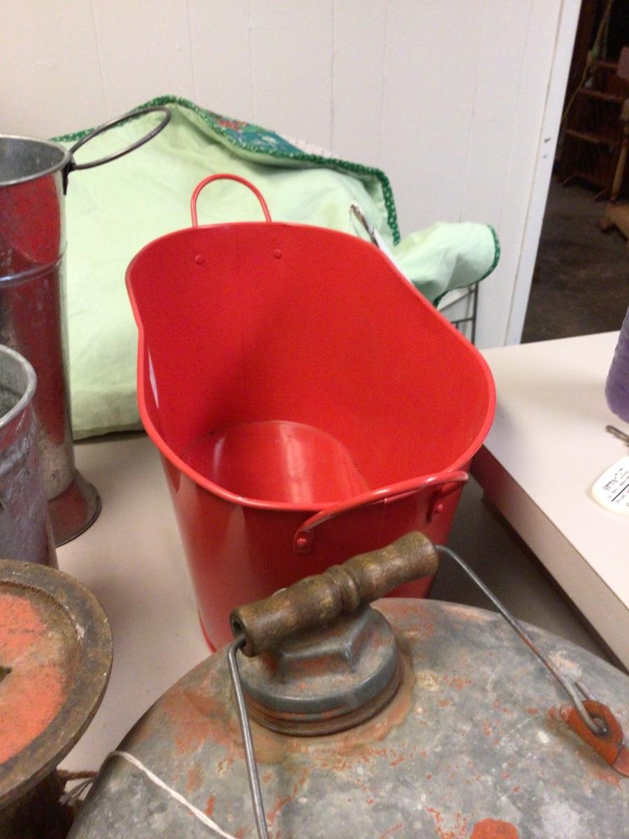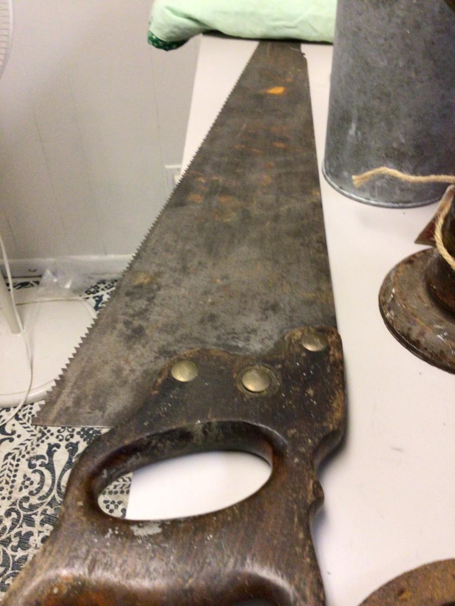 Yo7 get vintage gas can two flower holders,saw, two horse shoes, oval tube metal stand.