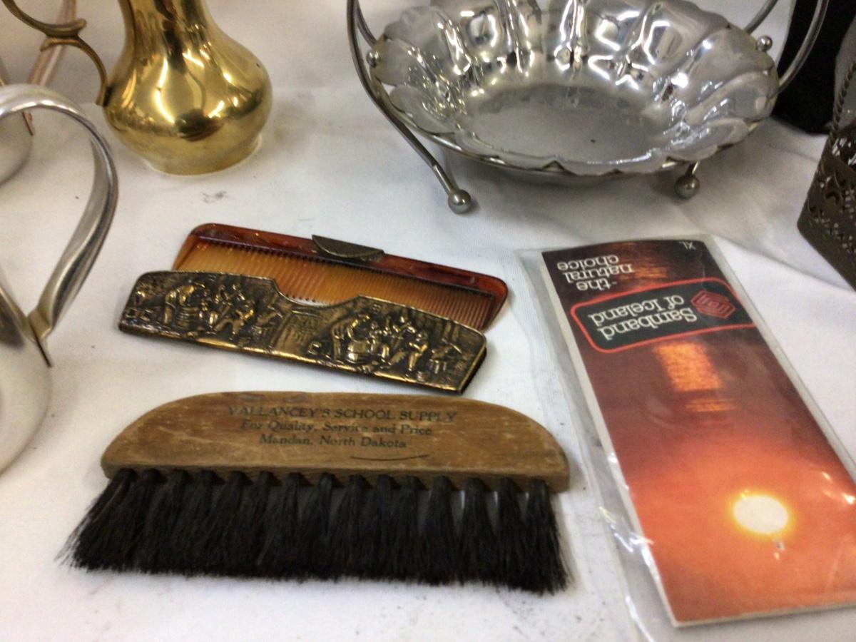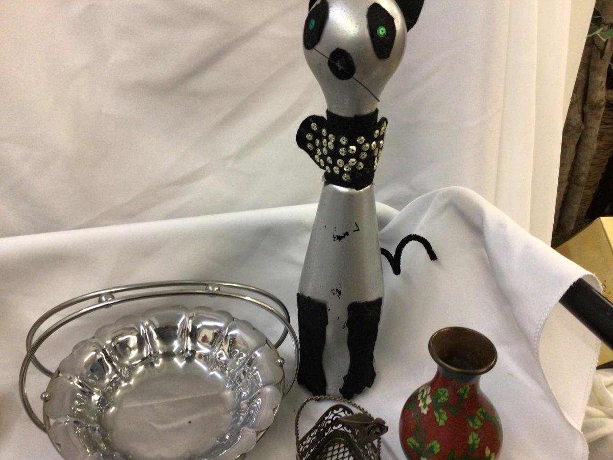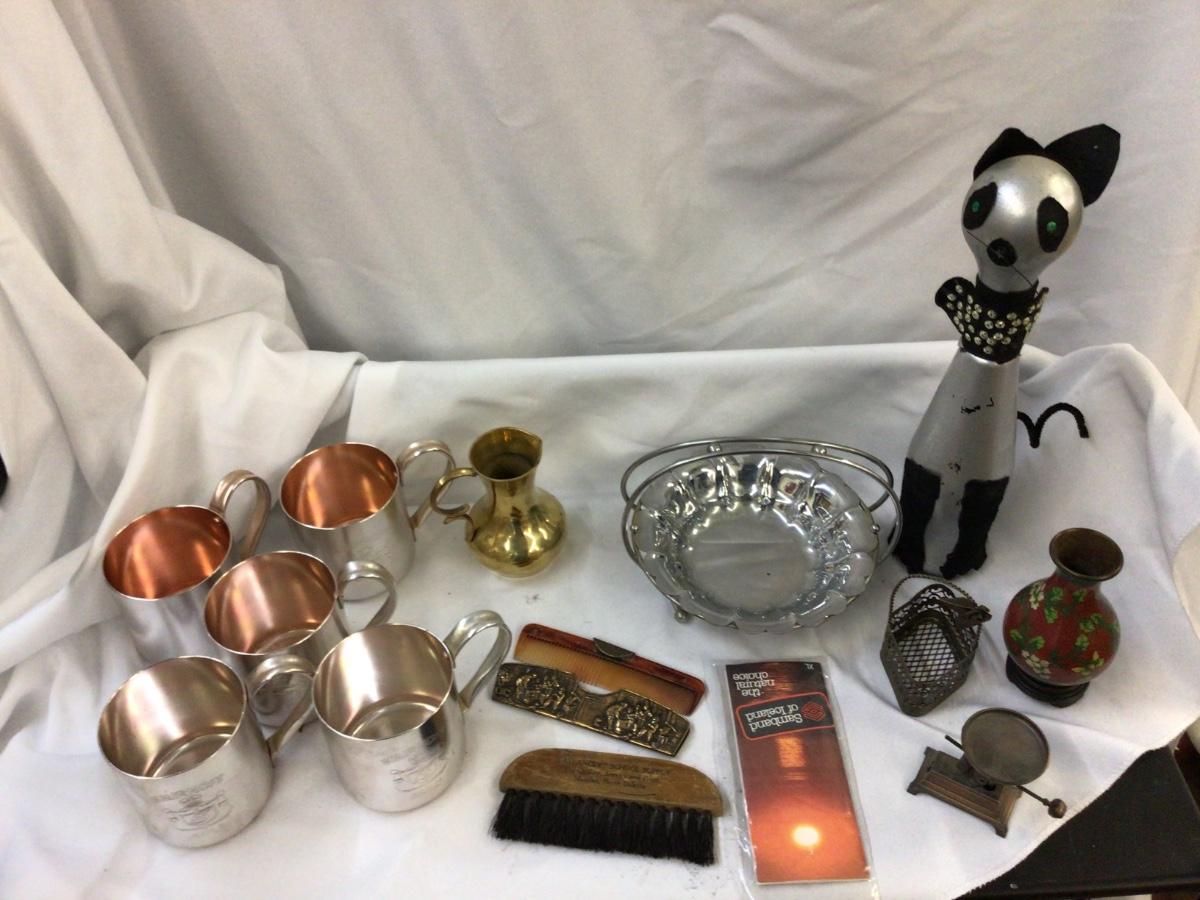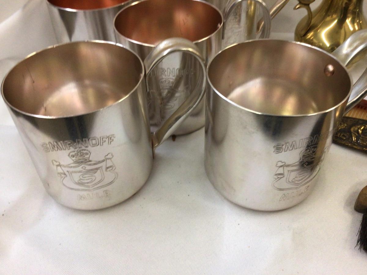 You get Smirnoff Mule mugs (5), cat, comb, pencil sharpener, closeness vase, metal dish, small diamond basket. brass pitcher.