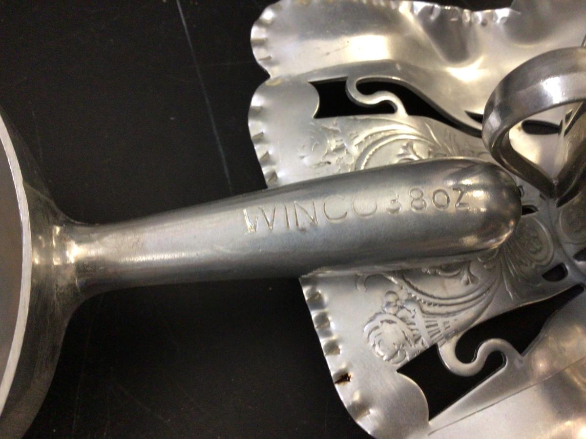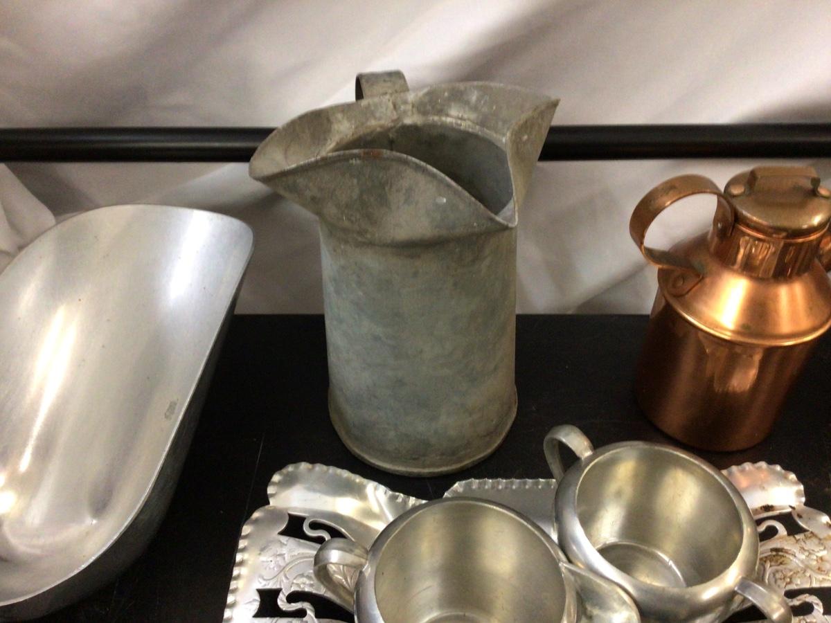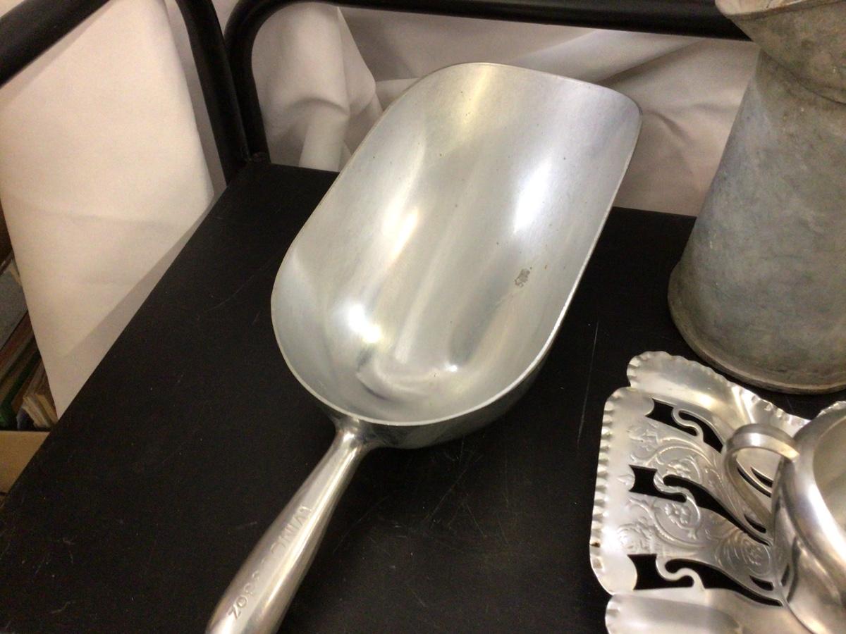 You get metal scoop, metal pitcher, metal cream and sugar with tray, two metal milk can pitchers, small metal pitcher and metal candle holder.