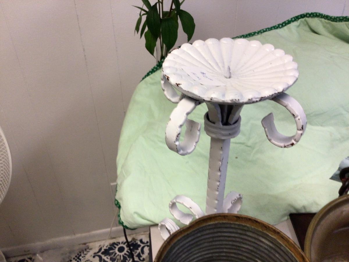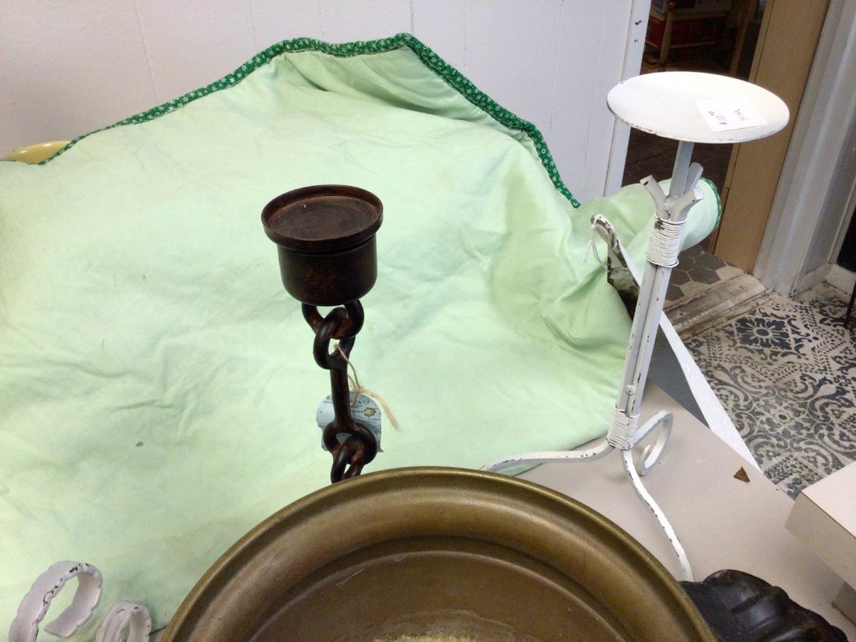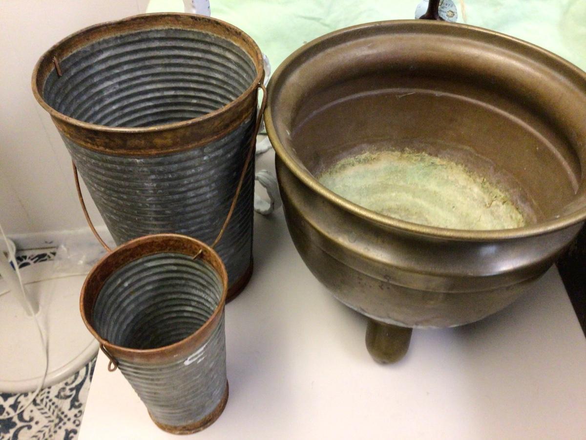 You get three single candle holders, brass pot, metal shelf, two flower pots, metal picture frame.