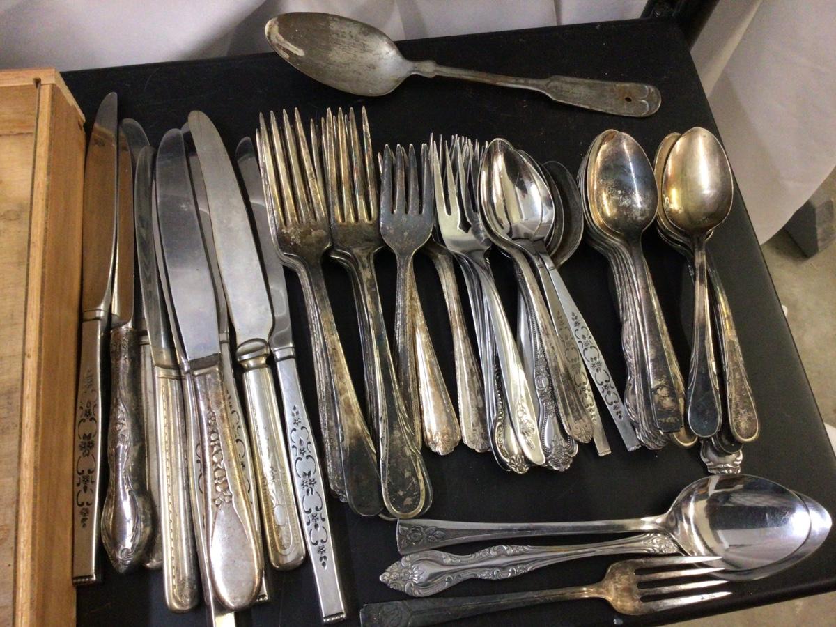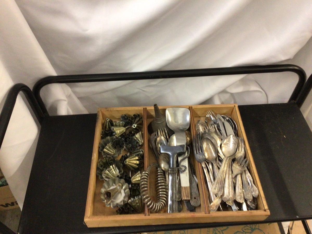 You get a bunch of silverware, also a bunch of frosting tips, funnel, ice cream scoop, metal handle, metal glass pan handle and nice wood silverware tray