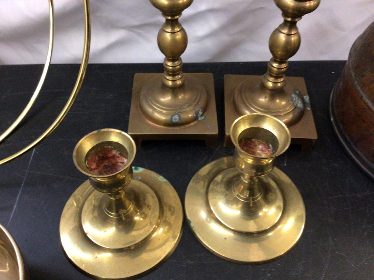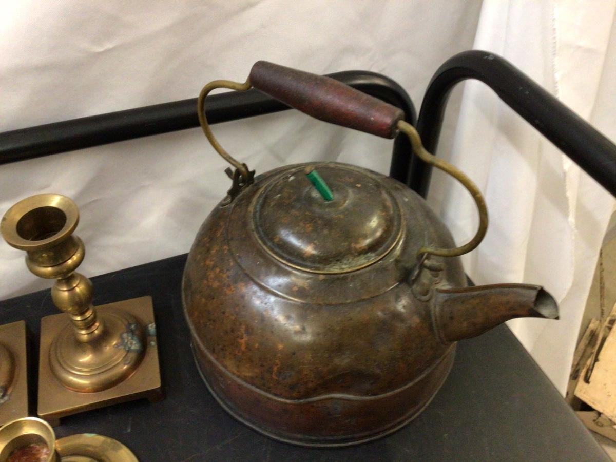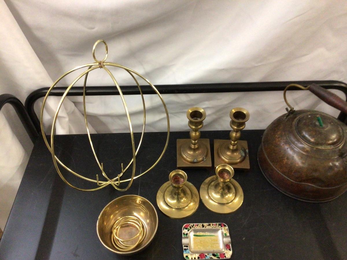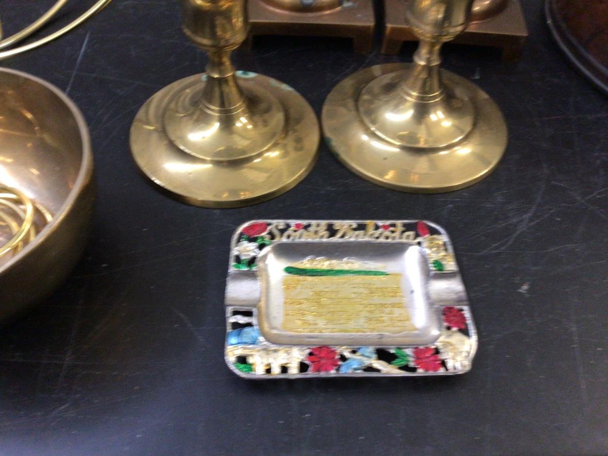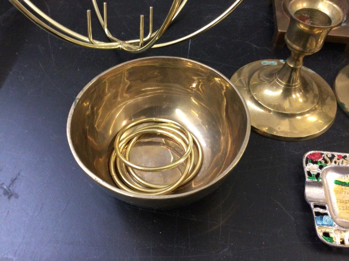 You get copper tea pot, two sets of brass candle holder, metal ashtray, metal bowl with metal rings, and metal round holder.