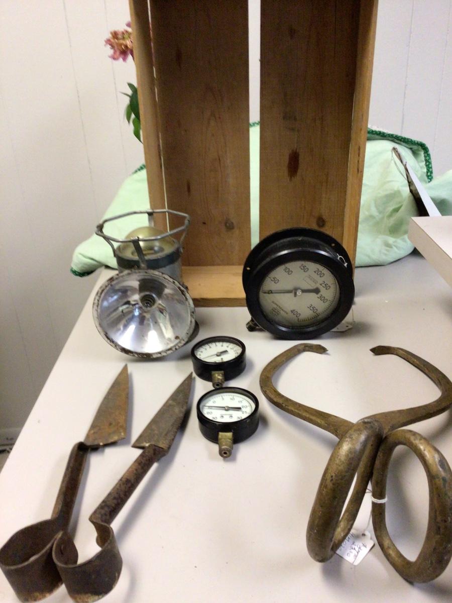 You get minor lanter, ice tongs, schears two small gages one large gage and the wood create.