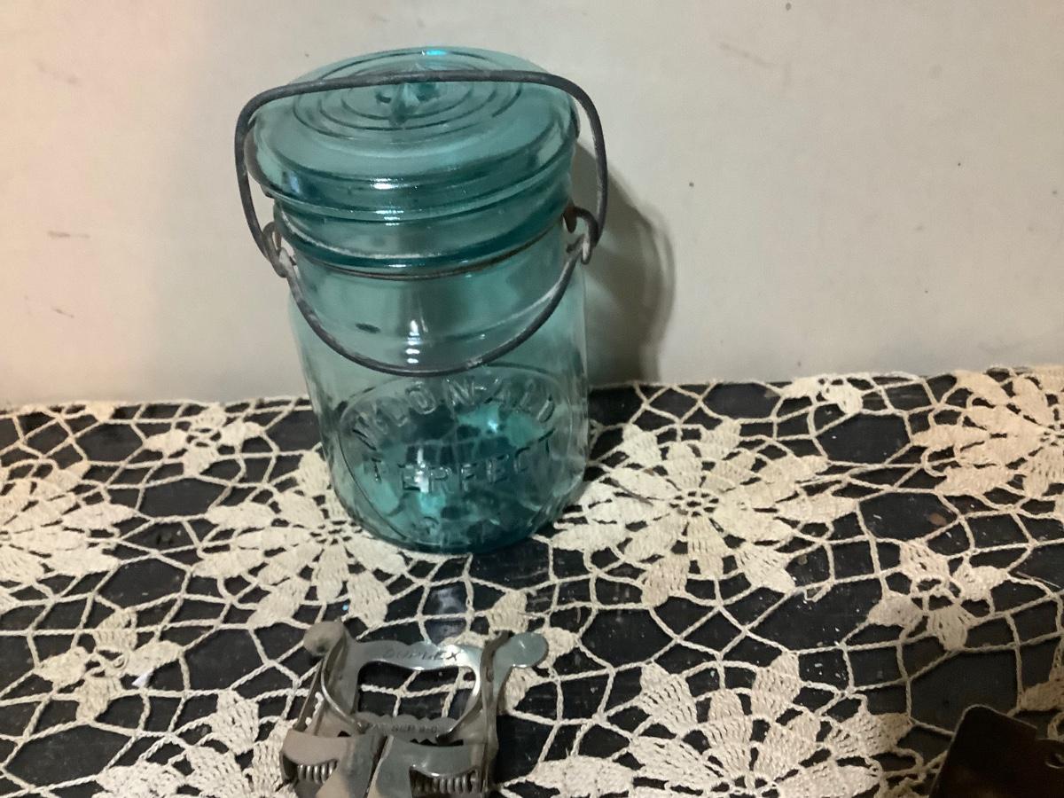 Metal Lot With Glass Canning Jar