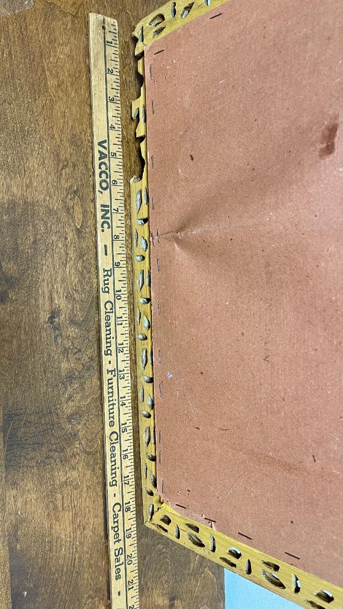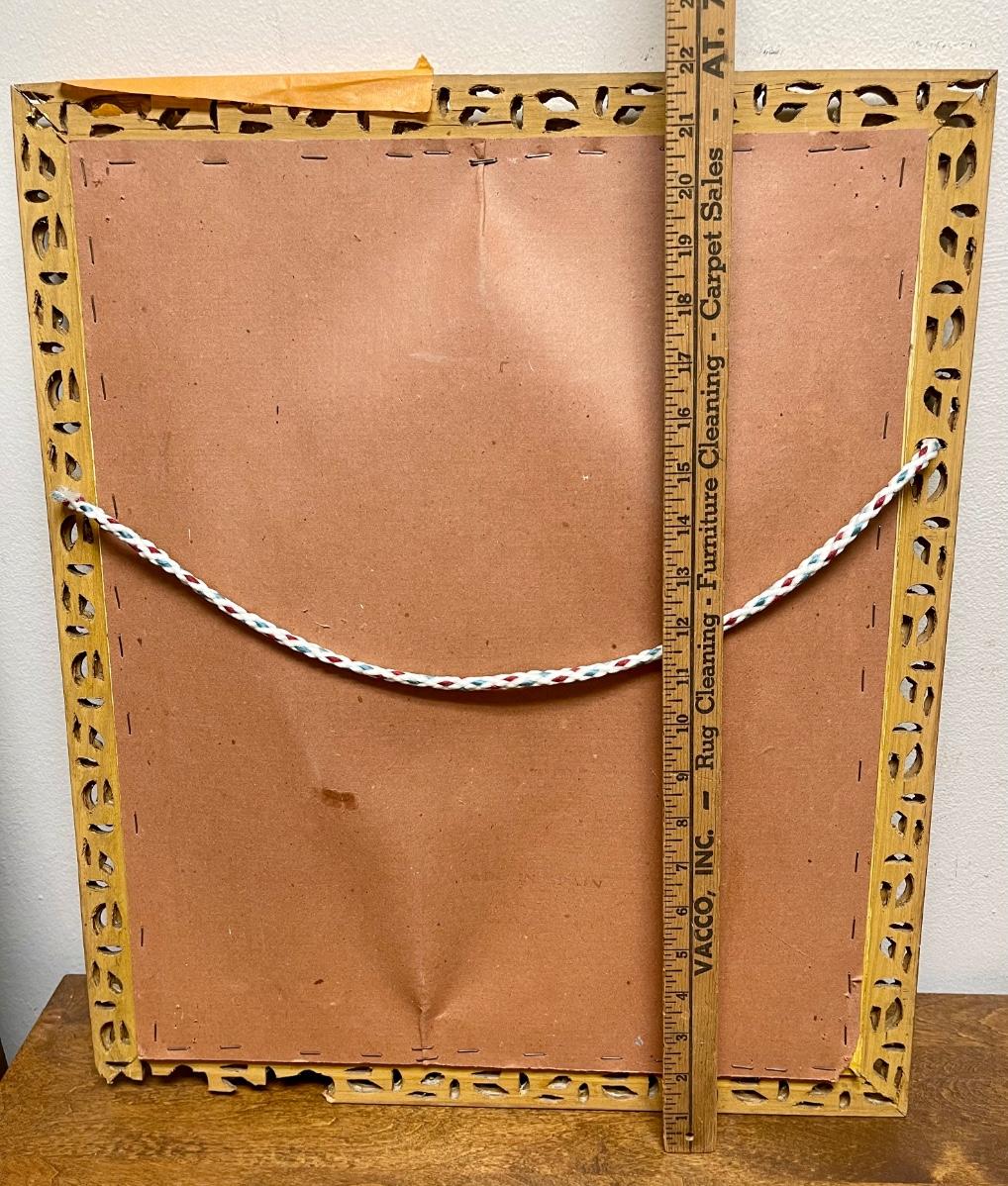 Damage to the frame on the top of the bottom corners on the right side when you’re looking at the picture.