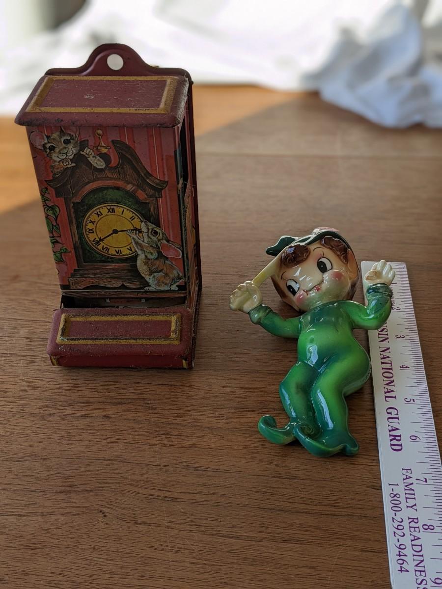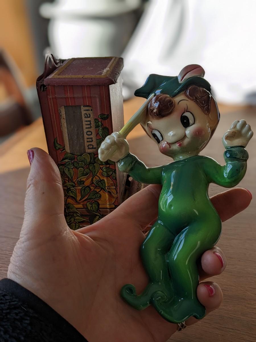 Metal Match Dispenser and Hand Painted Ceramic Elf (Japan)