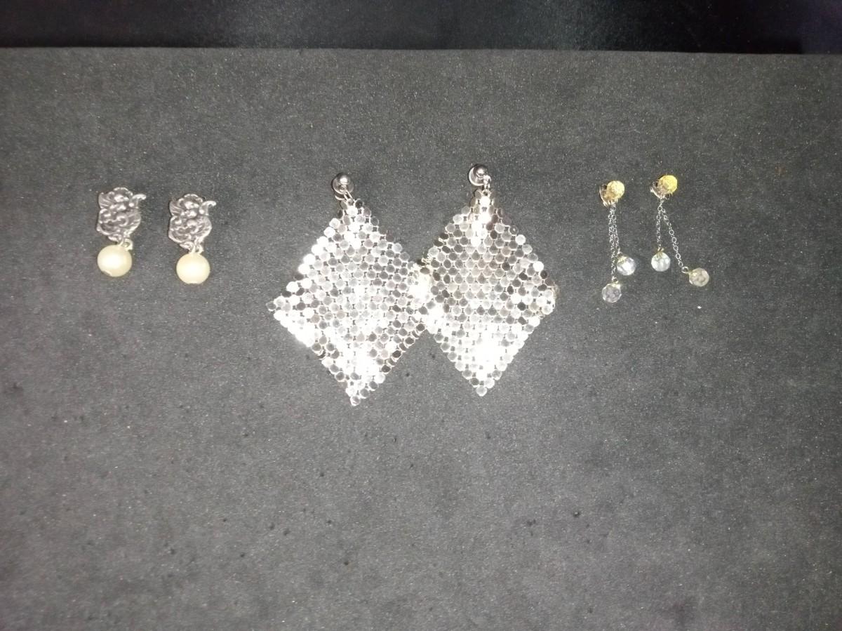 METAL MESH AND 2 OTHER PAIRS OF FASHION EARRINGS