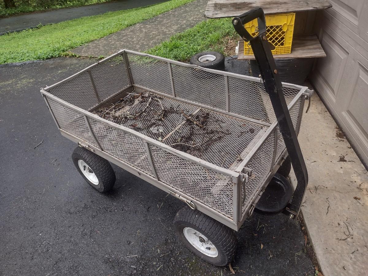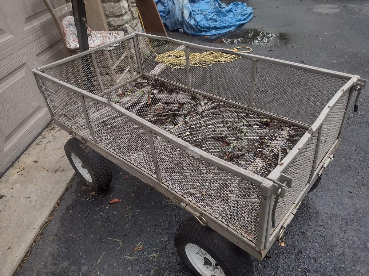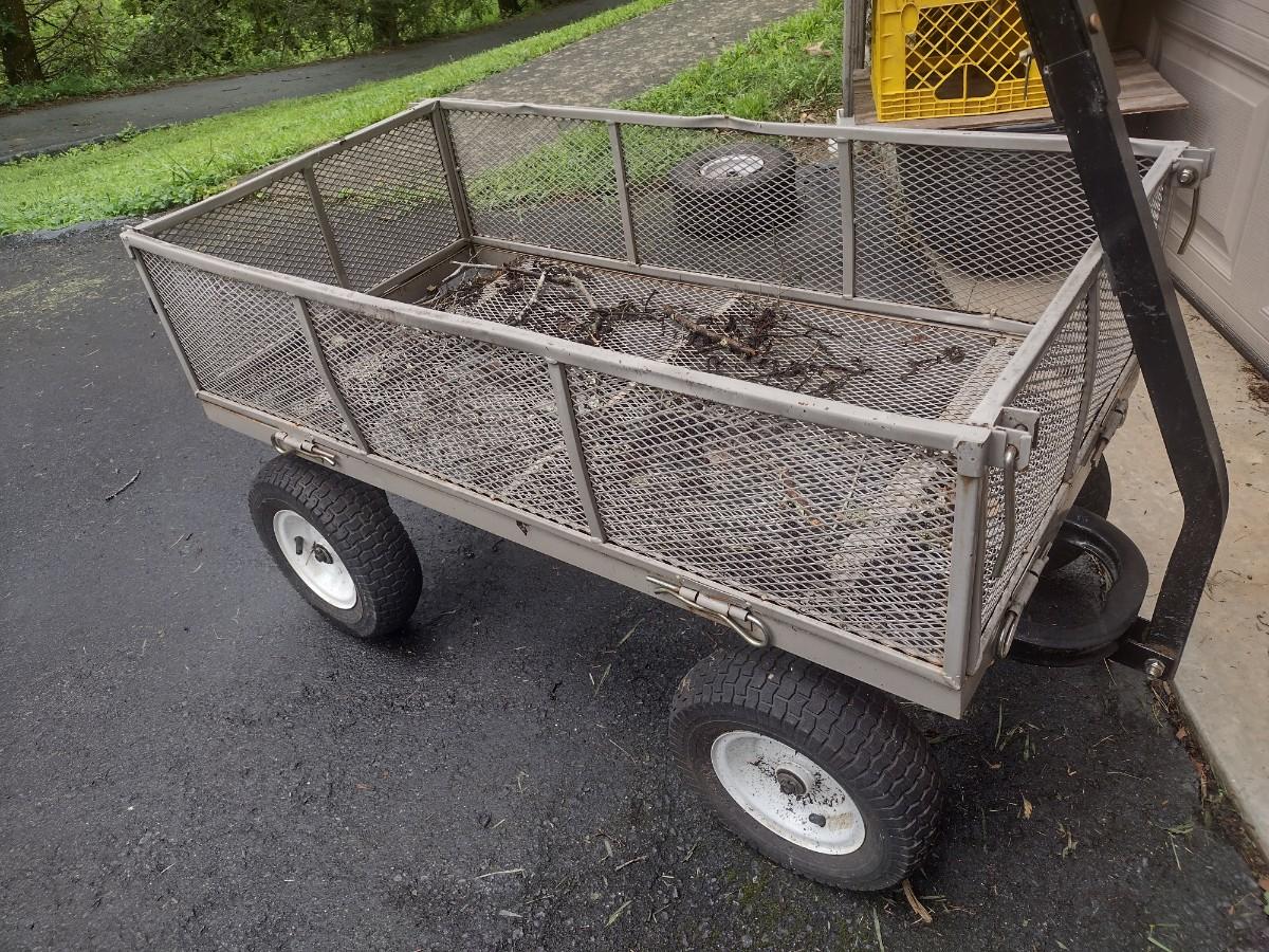 Metal Mesh Garden Pull Cart with Pnuematic Tires