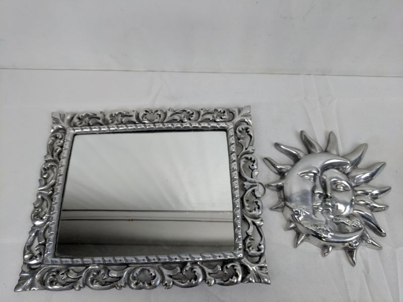 Metal Mirror & Metal Moon/Sun Wall Decor