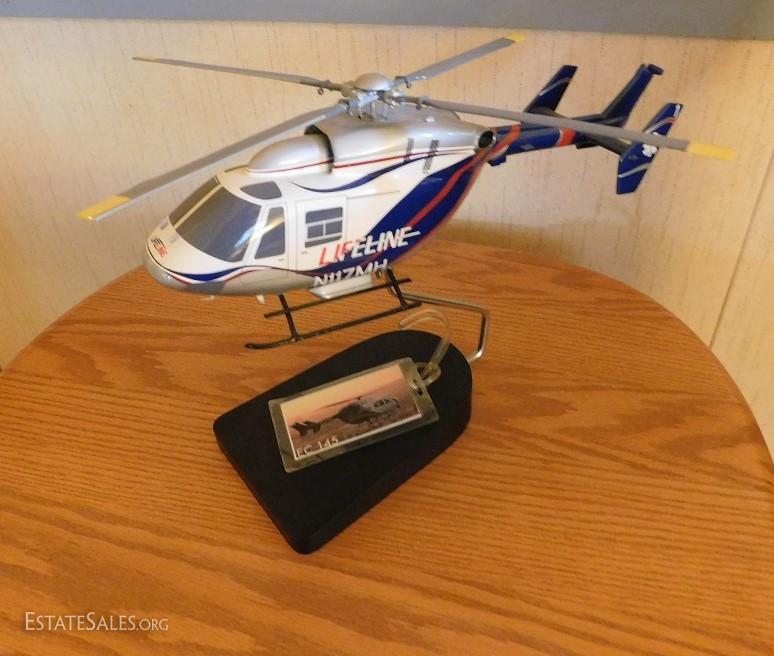 Metal Model Replica Life Line Air Transport Helicopter in very good condition approximately 15" long