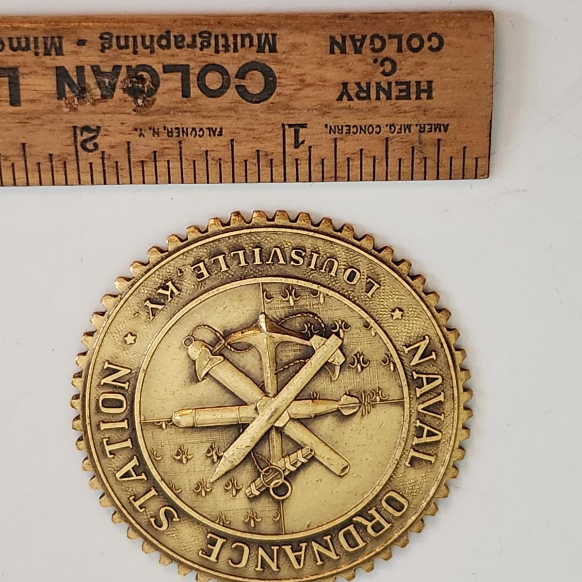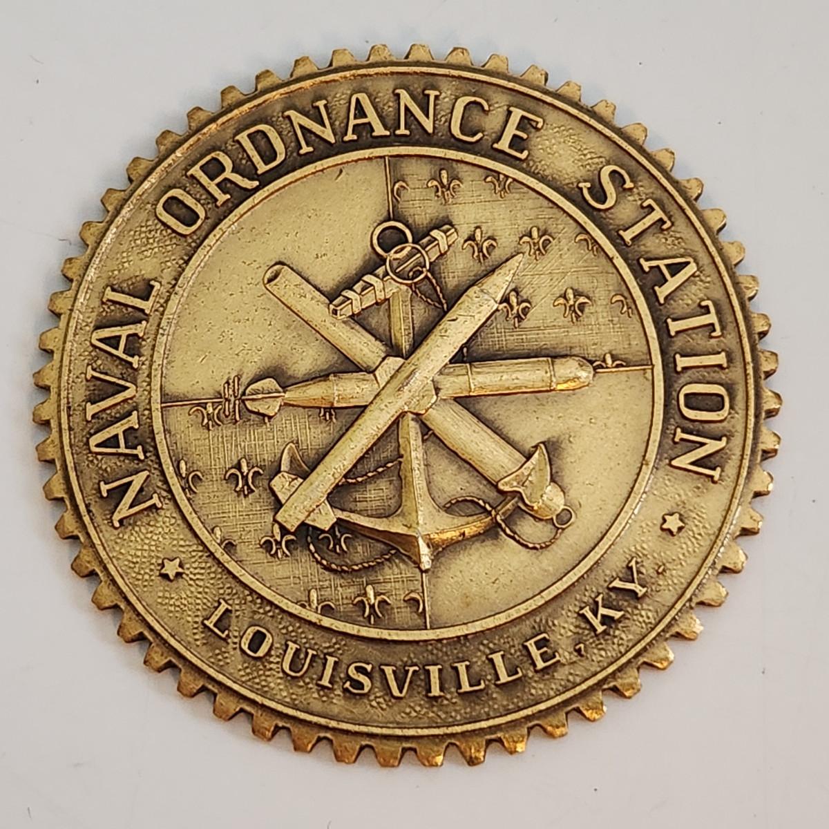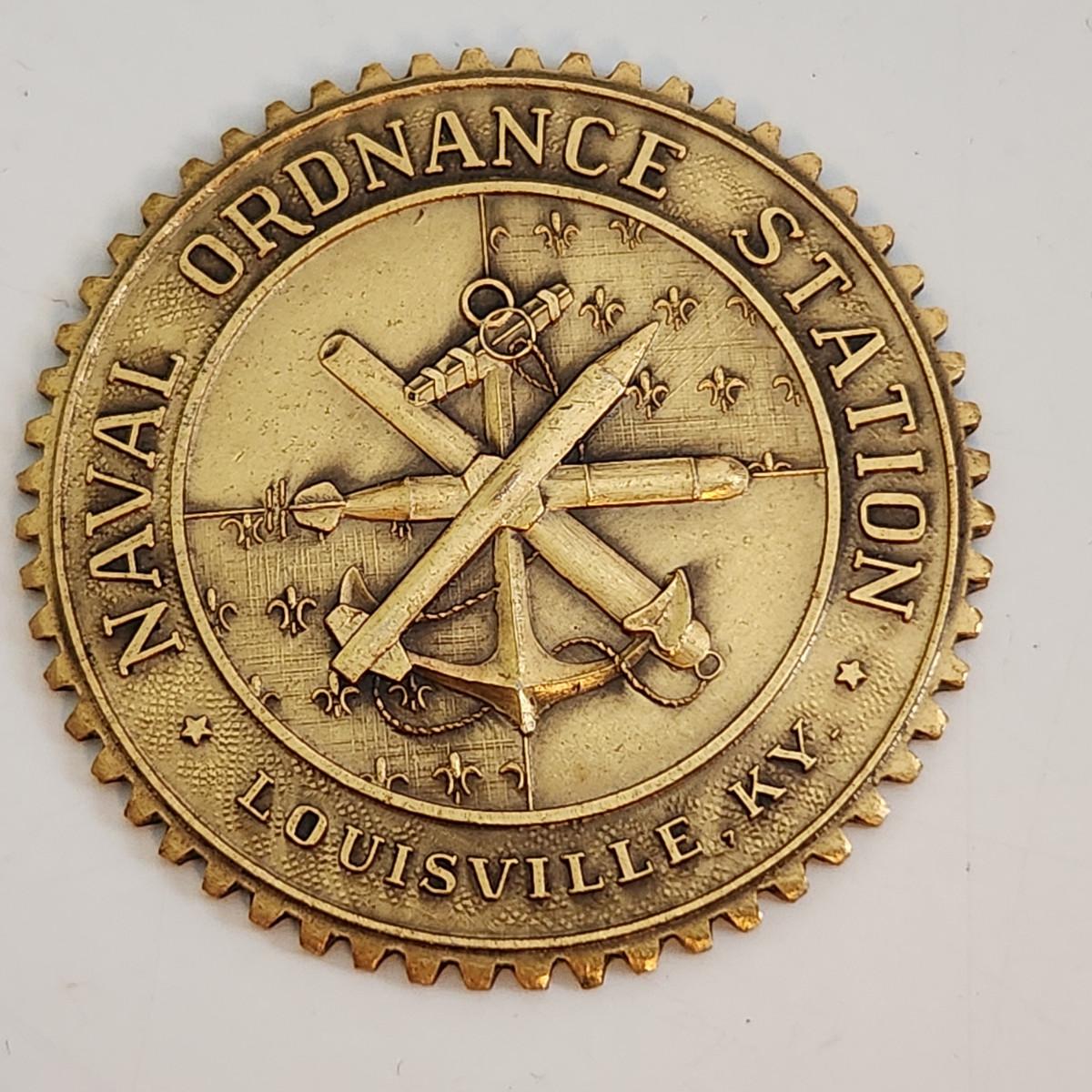 This auction lot is for a Metal Naval Ordnance Medallion. This item appears to havebeen taken off an award or other such item. Nice Louisville, KY memorabilia piece.