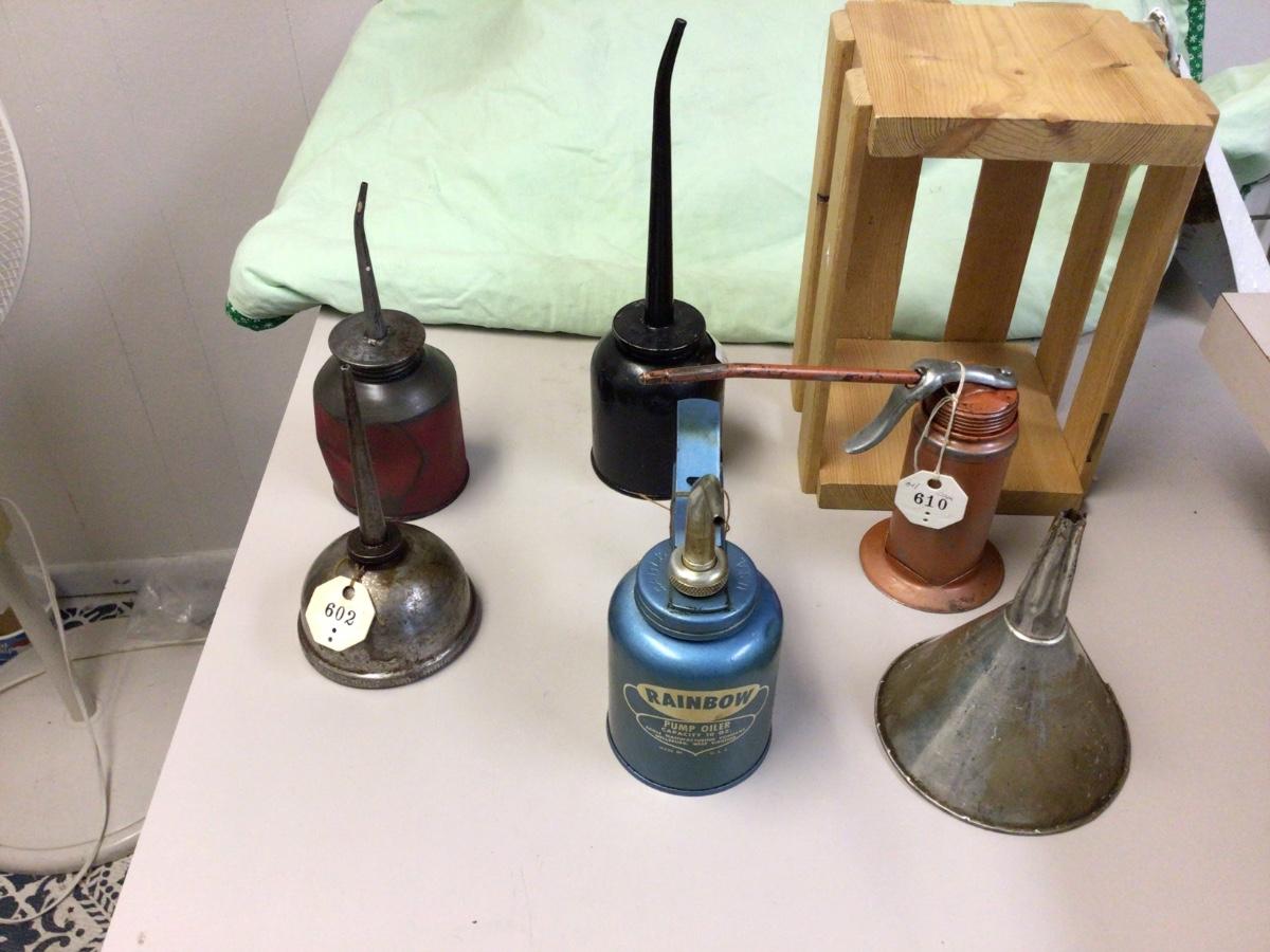 You get 5 metal oilers, a metal funnel and even the small wood crate.