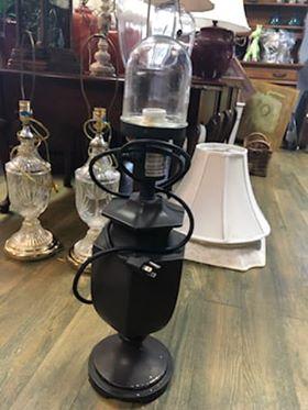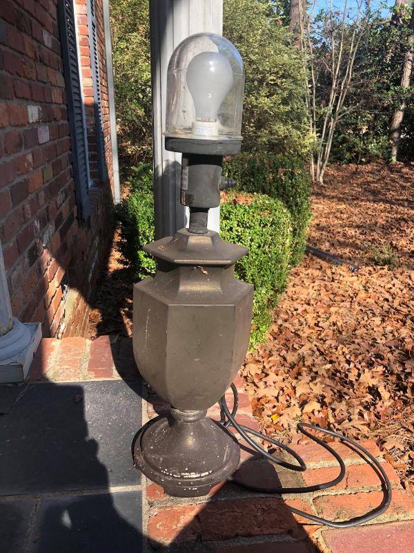 Outdoor lamp. Metal. Globe protects light bulb. Heavy cord. No shade included.