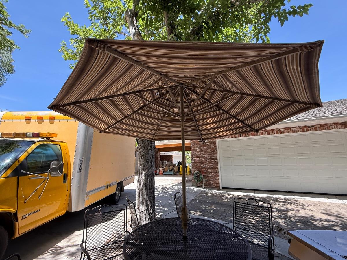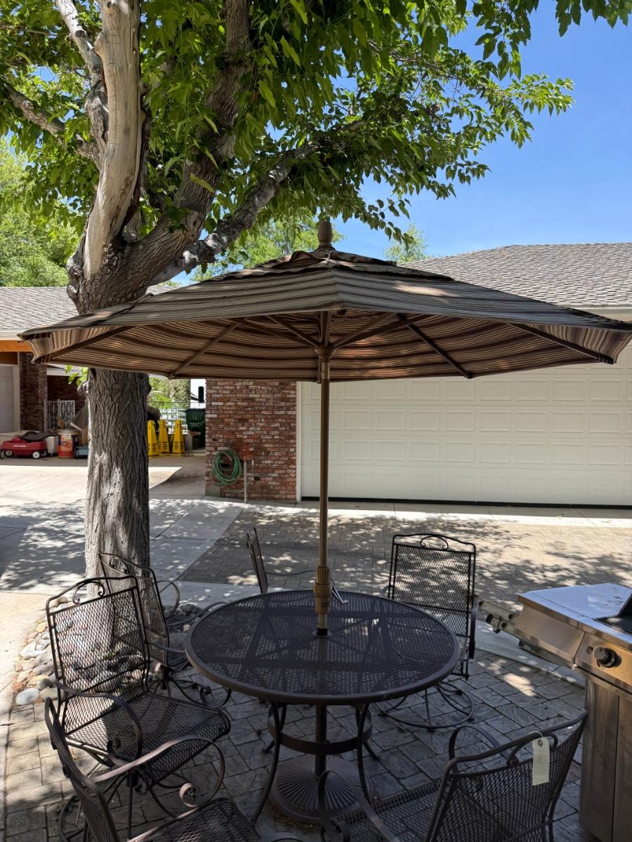 Metal outdoor Patio Set w/6 Rocking, Swivel Chairs & Umbrella