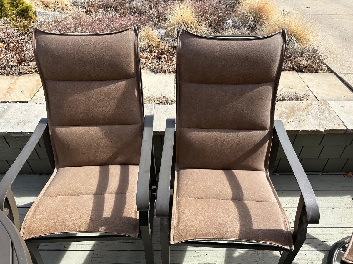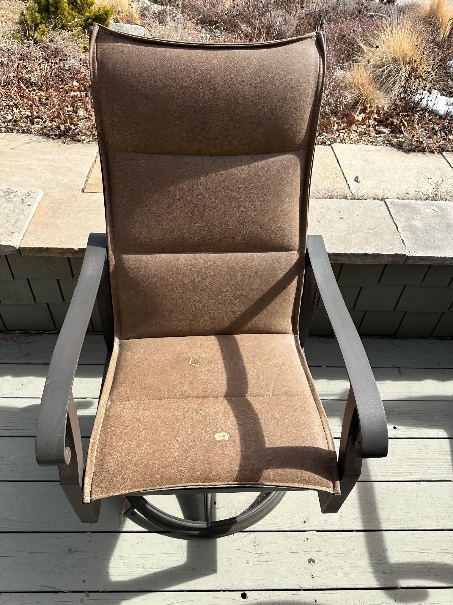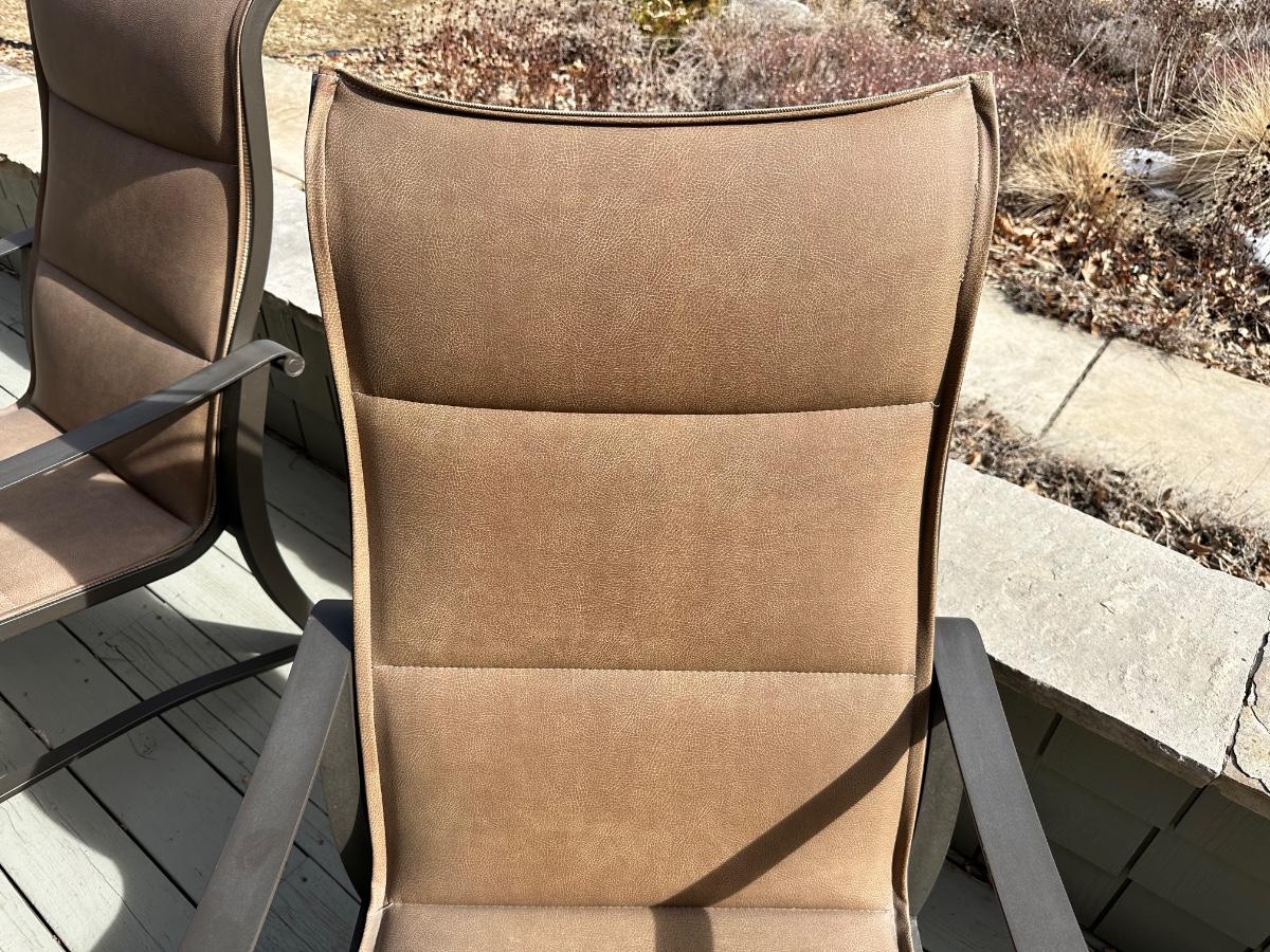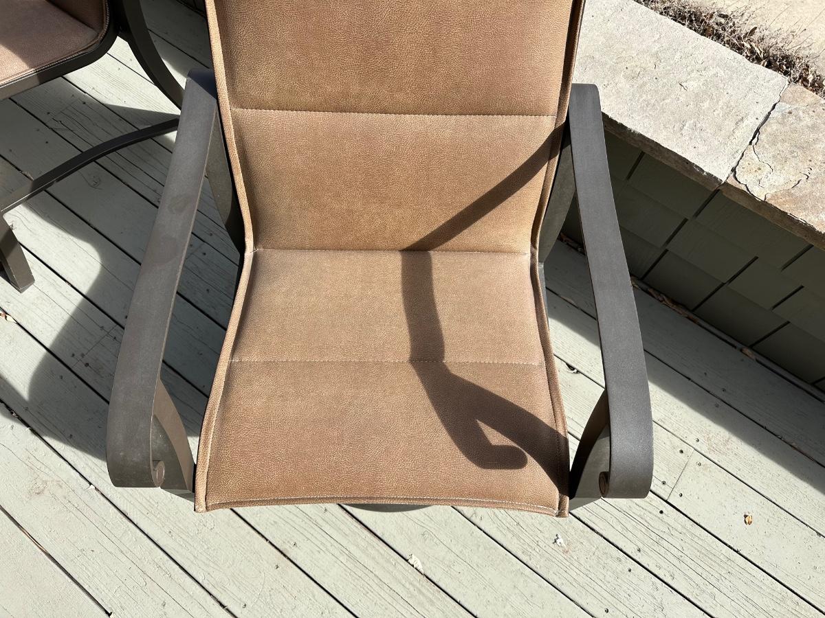 2 CHAIRS ARE SWIVEL ROCKERS, 1 OF THEM HAS A LITTLE DAMAGE TO THE CUSHION (SEE PIC) ALL IN GREAT SHAPE!