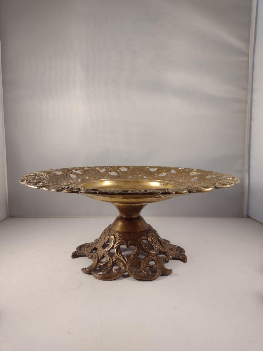 Reticulated Metal Pedestal Bowl. Approx 12 3/4" in diameter.