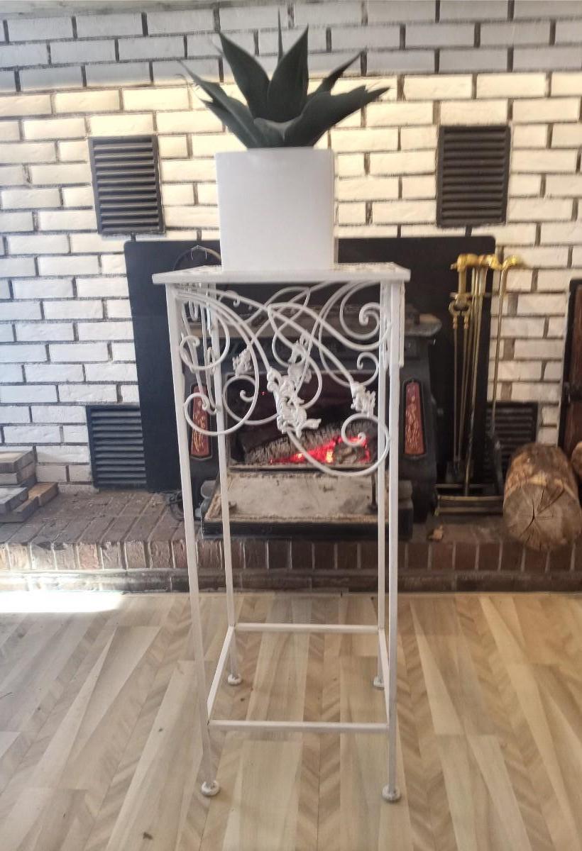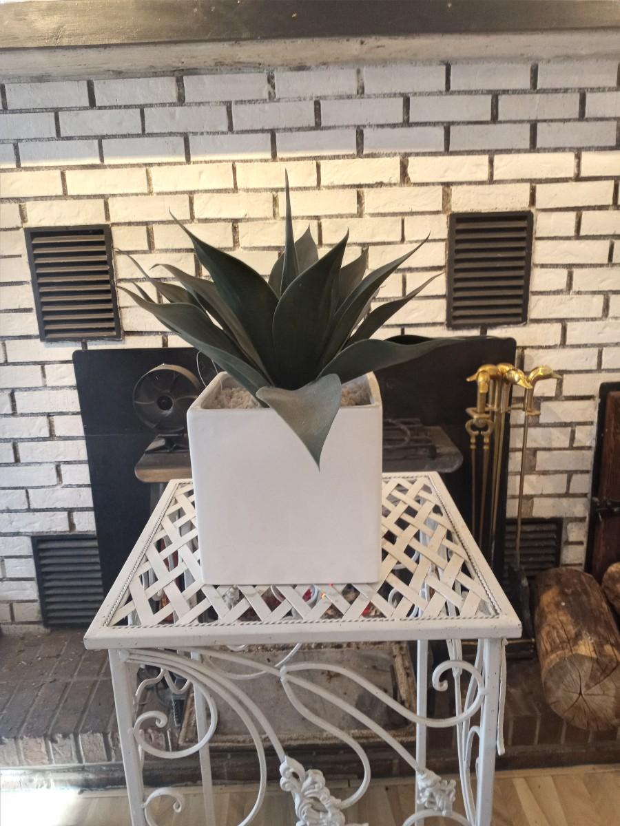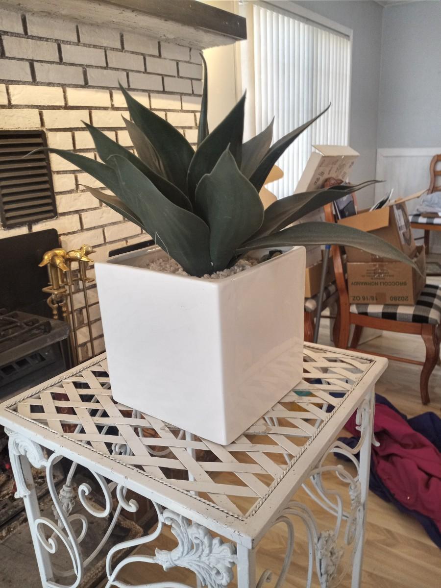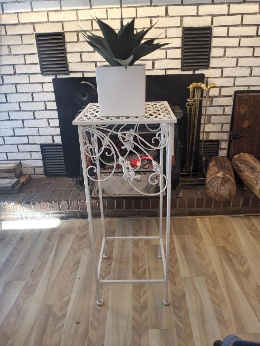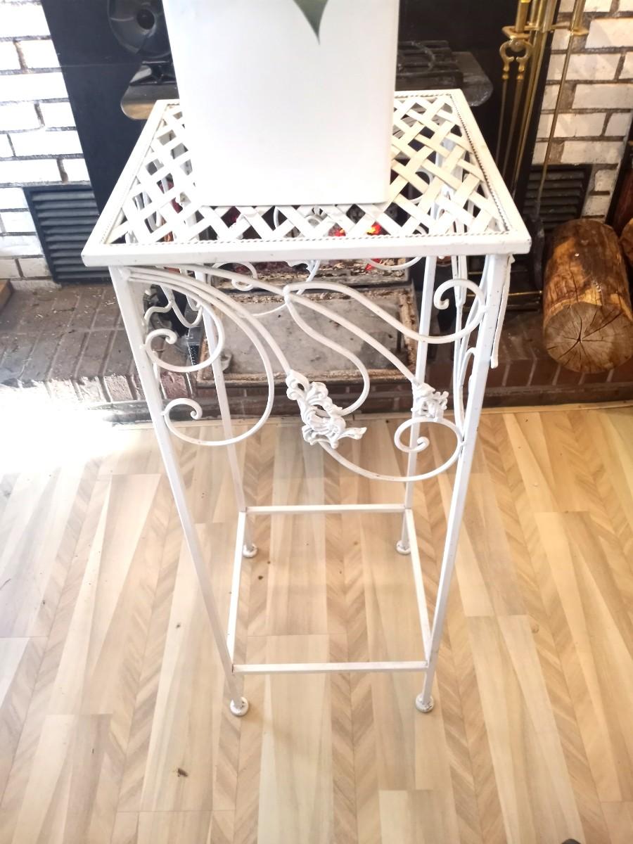 APPROX. 15X37 METAL PLANT STAND AND FAUX PLANT 7" SQUARE