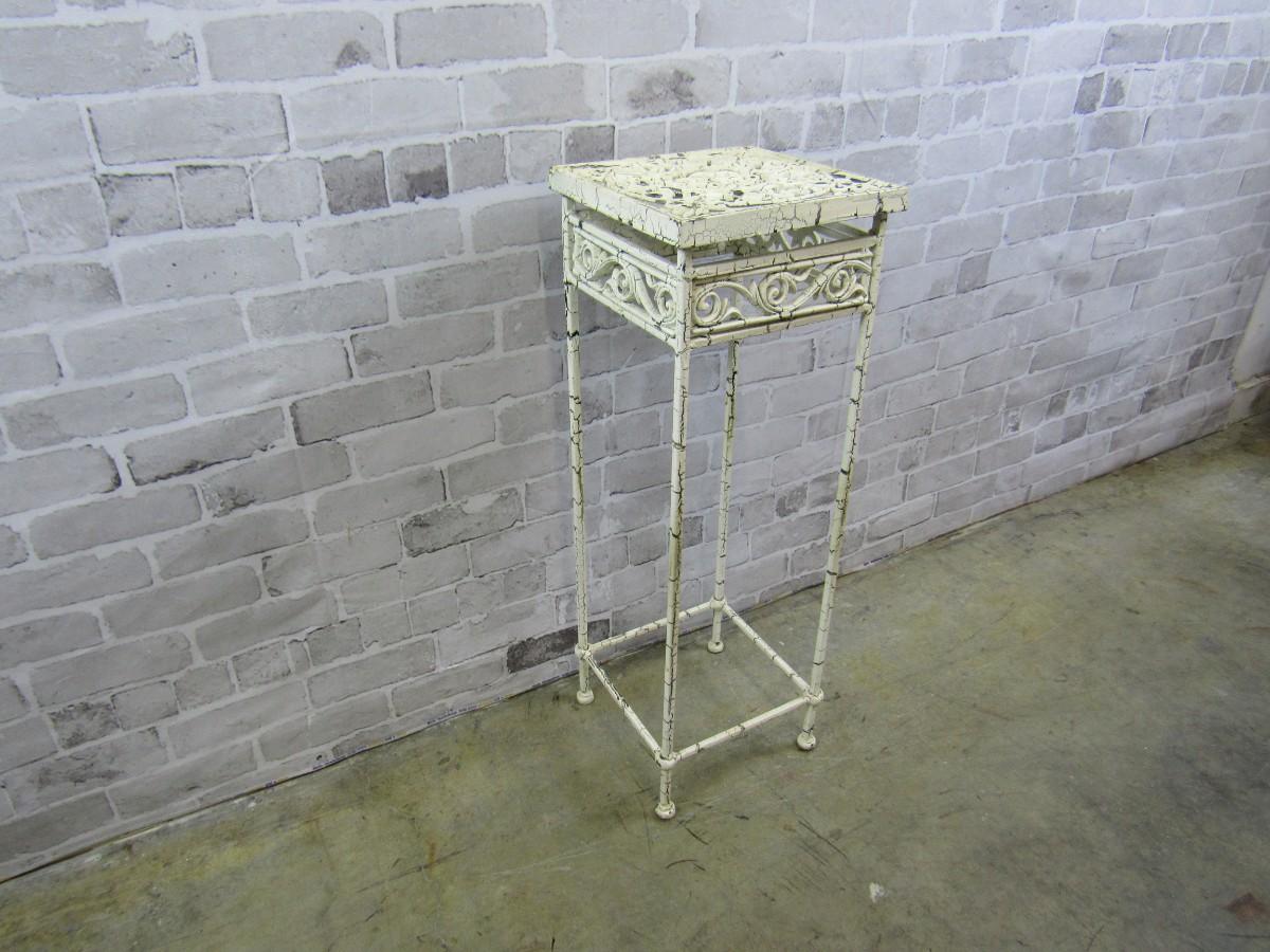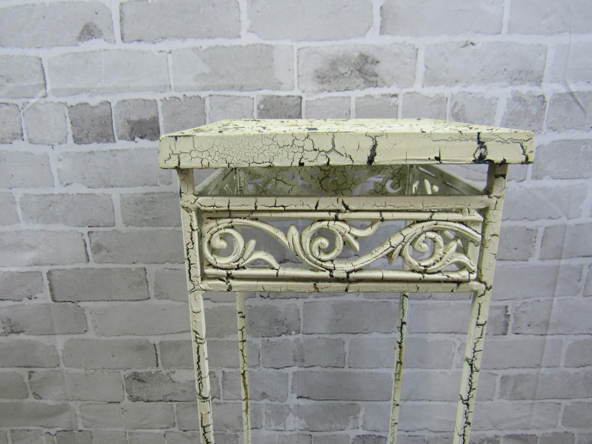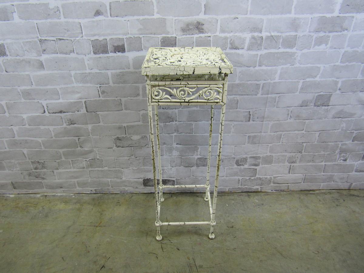 Metal Plant Stand with Antiqued White Crackle Finish, 28" high x 9 1/2" square.