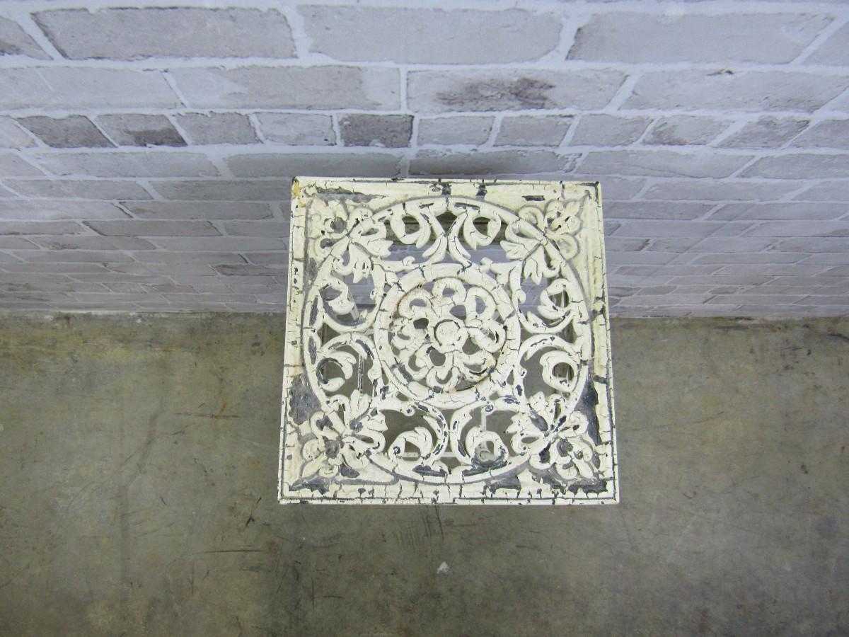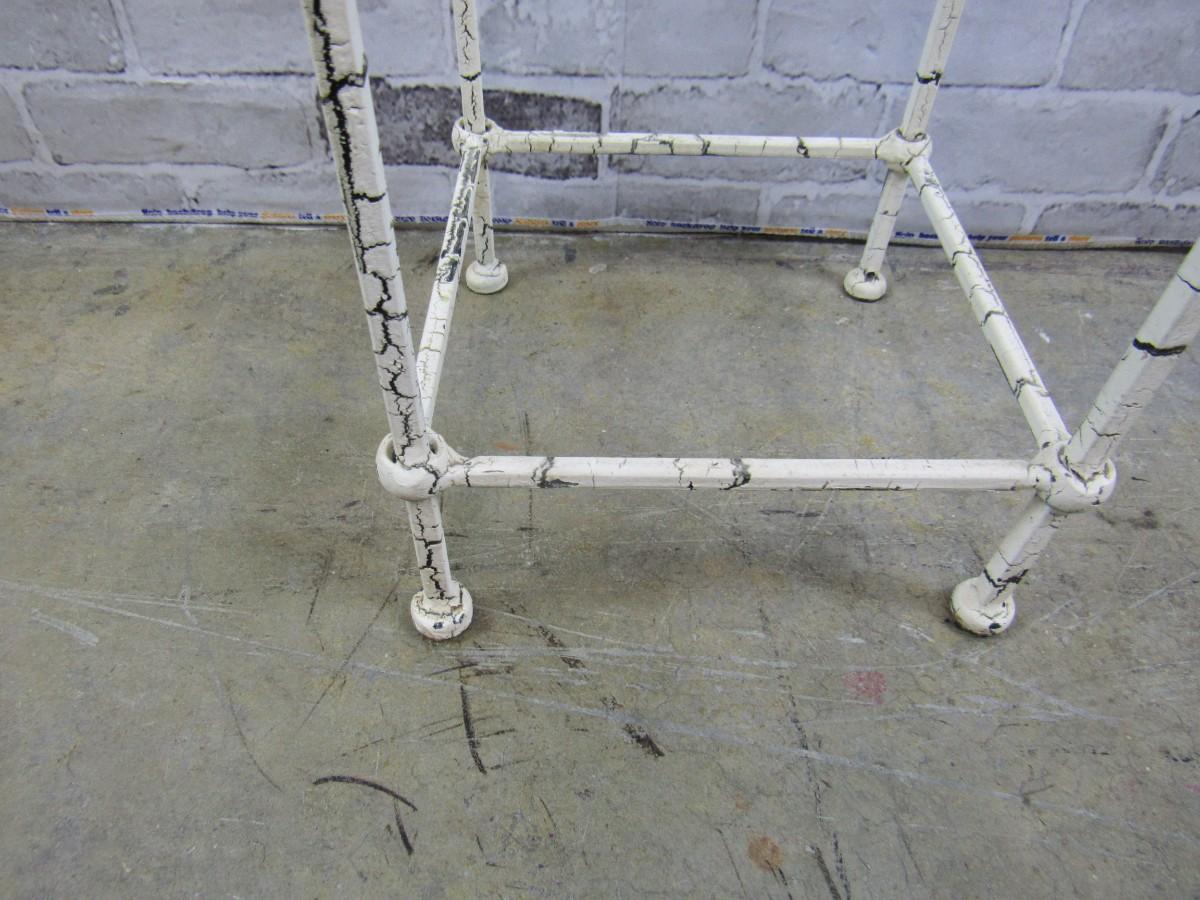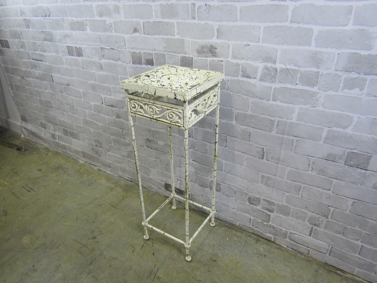 Metal Plant Stand with Antiqued White Crackle Finish, 28" high x 9 1/2" square.