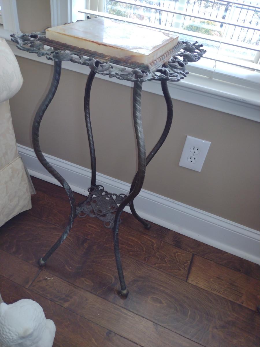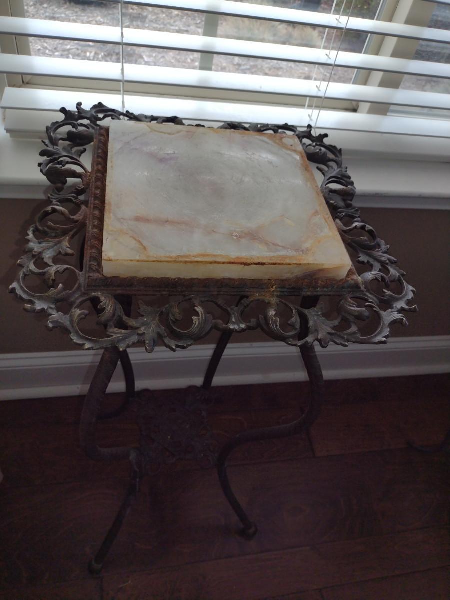 Metal Plant Stand with Stone Top- Approx 13" in Diameter