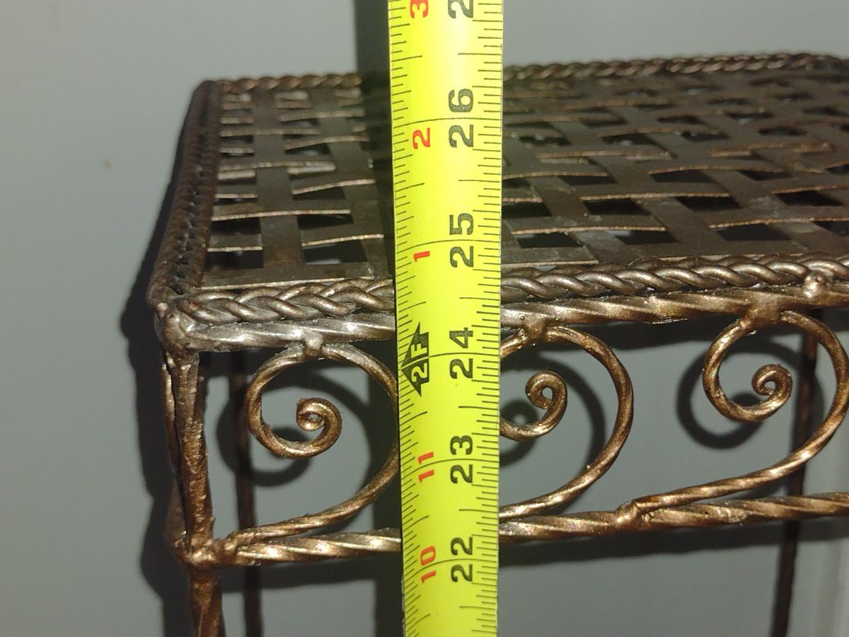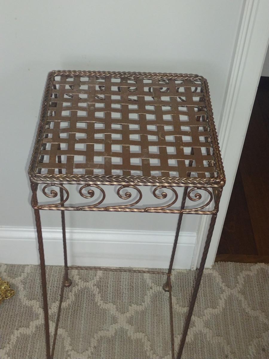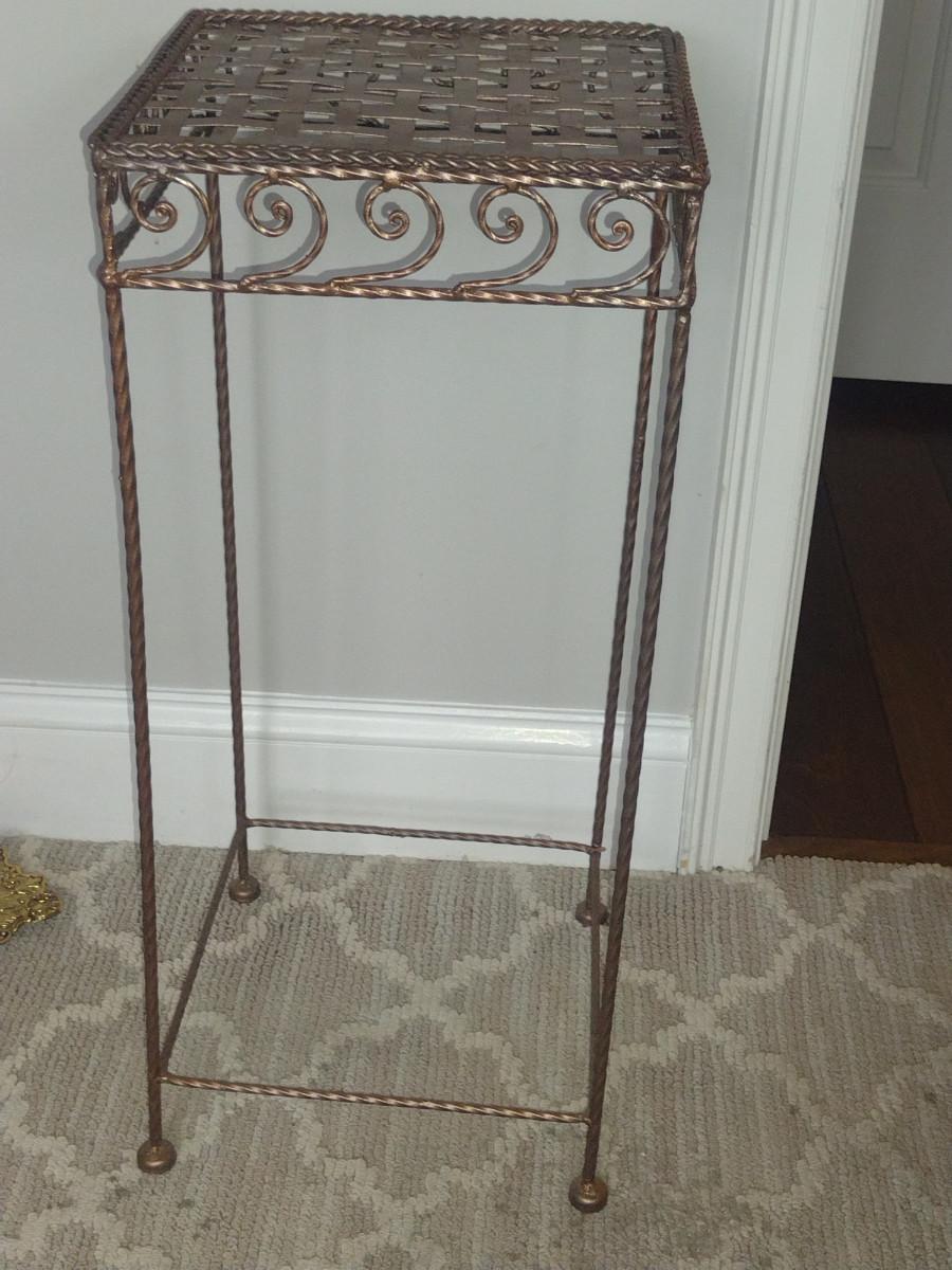 Metal Plant Stand with Woven Design Top- Approx 10 1/2" Square, 24 1/2" Tall