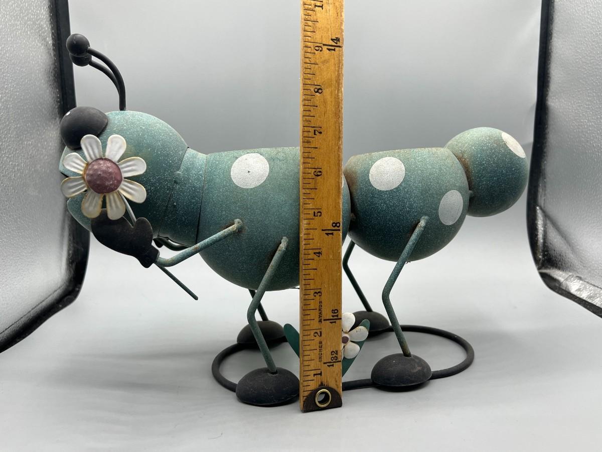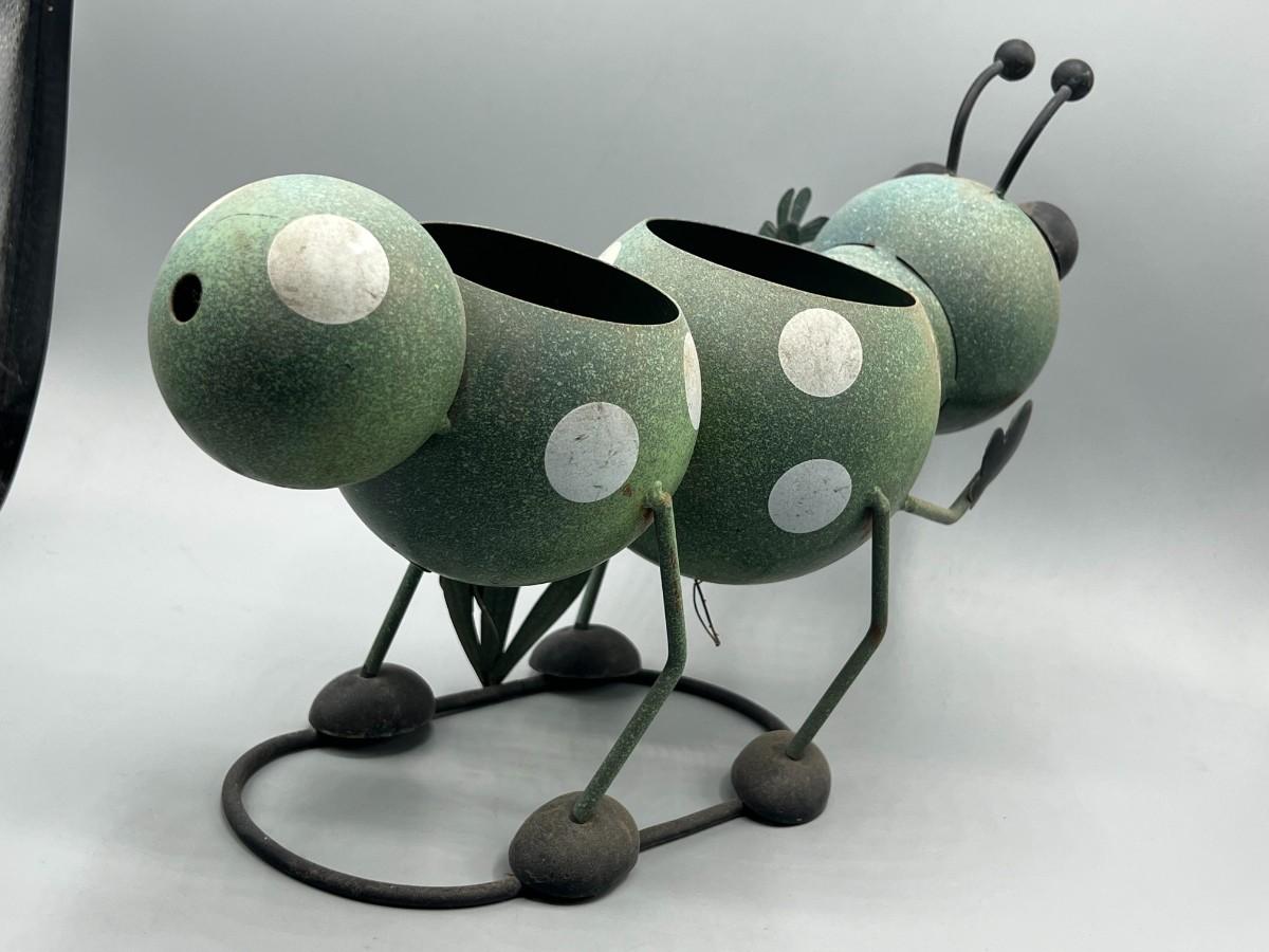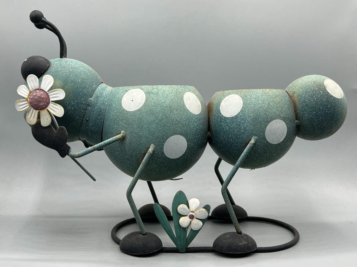 Metal Polka Dotted Caterpillar with Flower Yard Garden Art Planter Pot