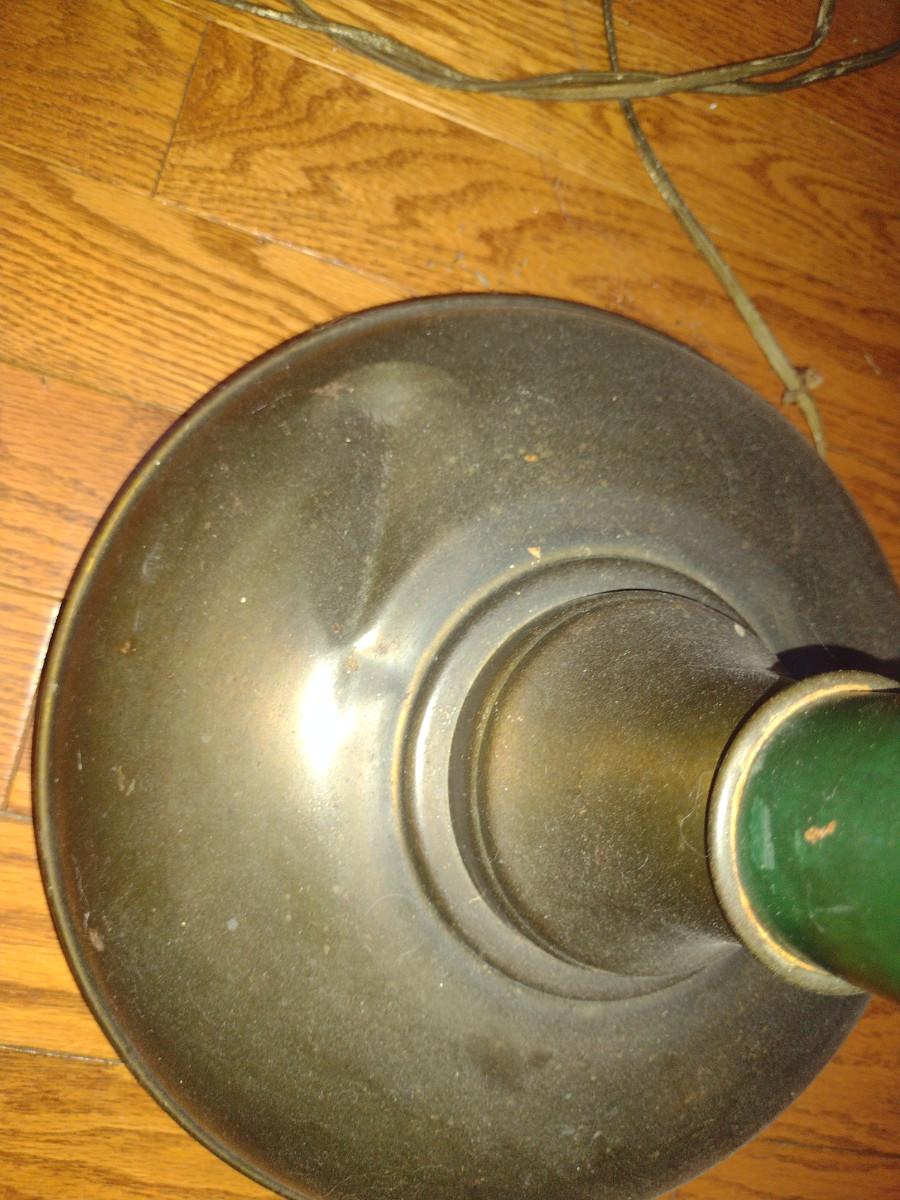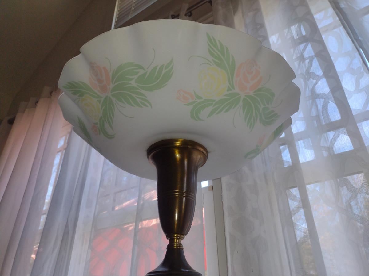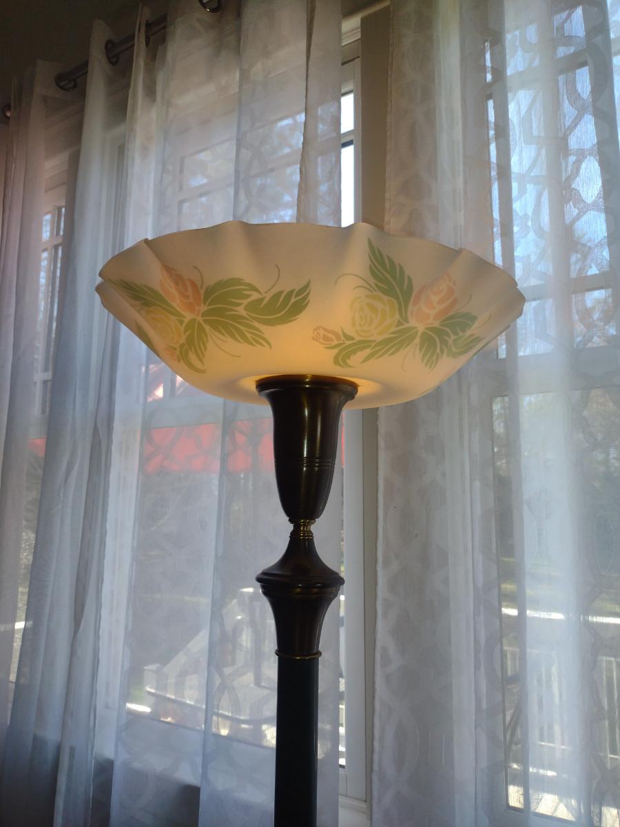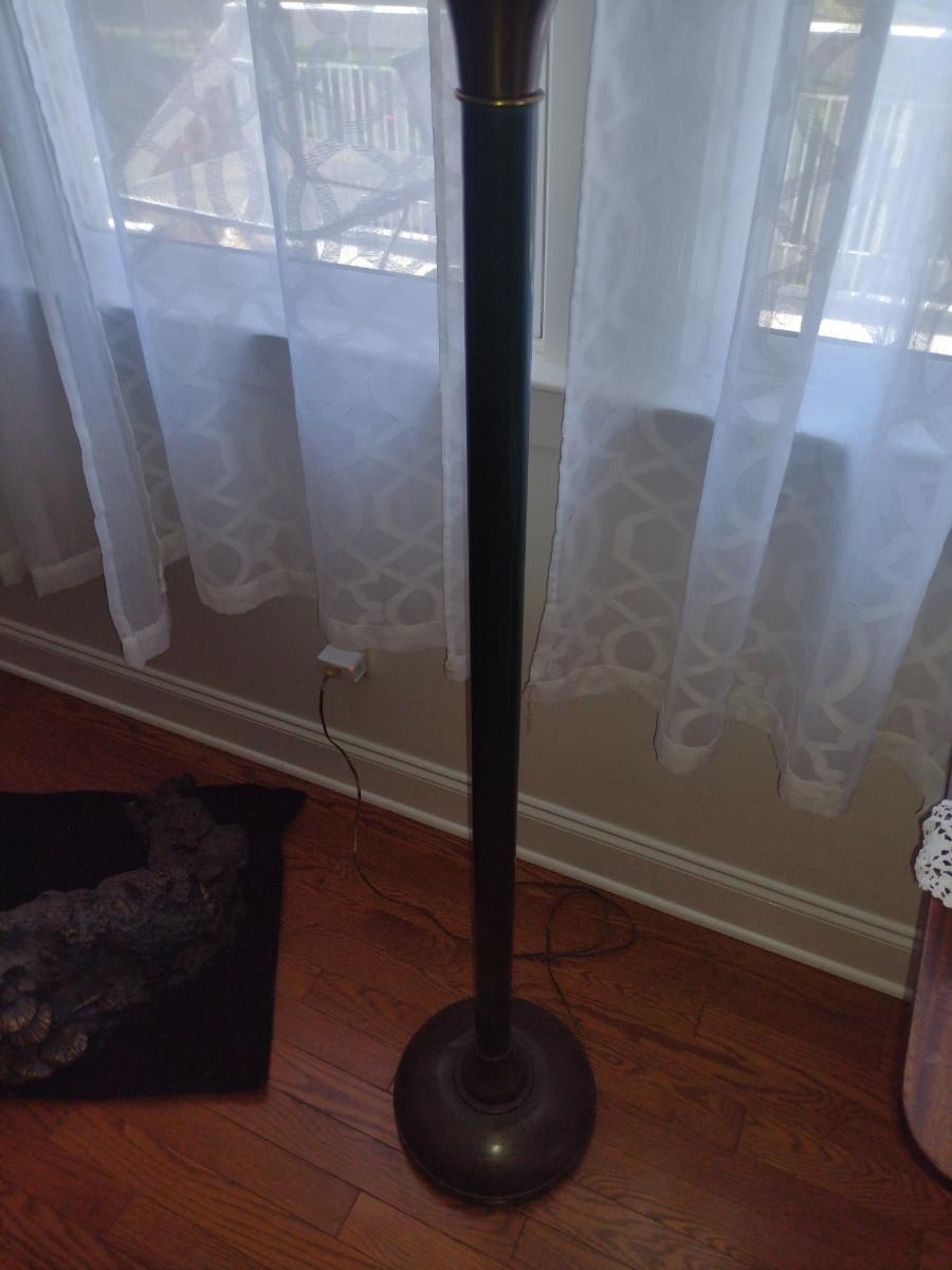 Metal Post Floor Lamp with Glass Shade- Approx 65" Tall. Item has dent on base- please see all pictures.
