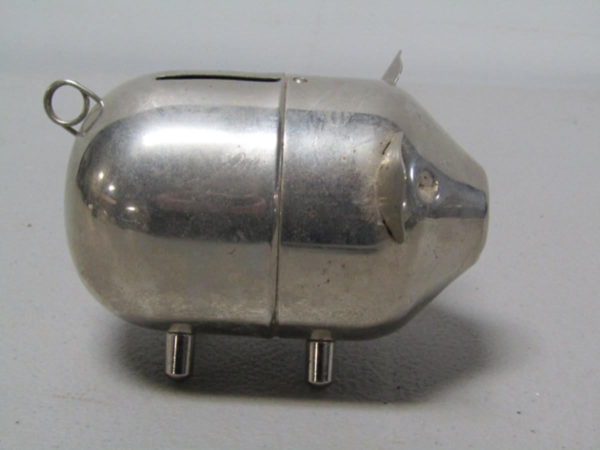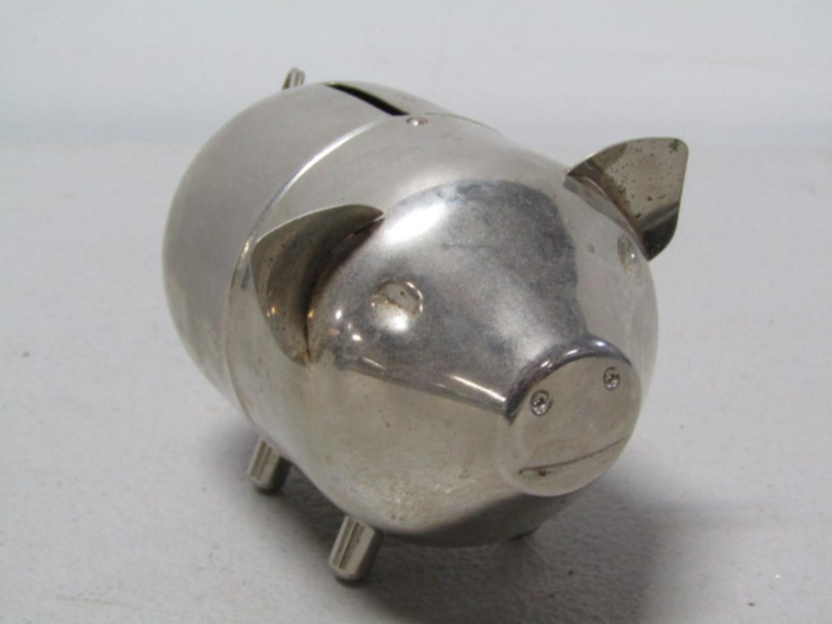 Metal Pull-to-Open Piggy Bank Made by Leonard (Hong Kong)- Approx 4" Long