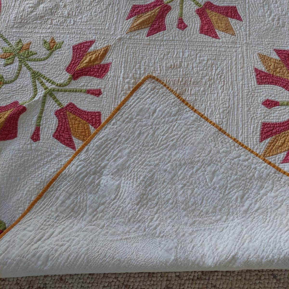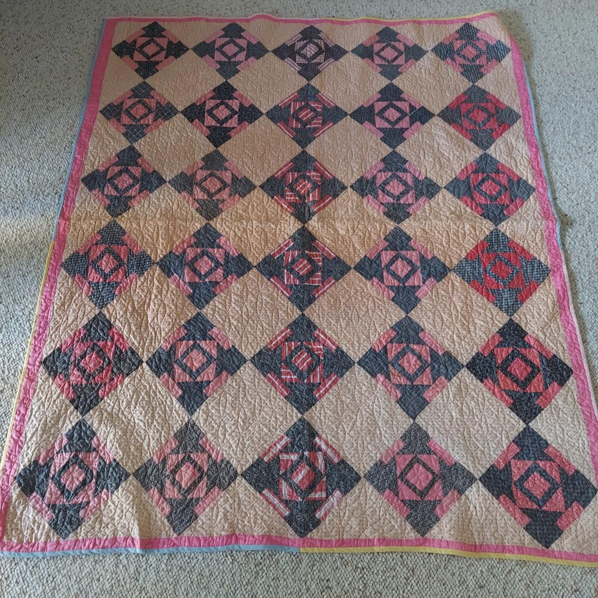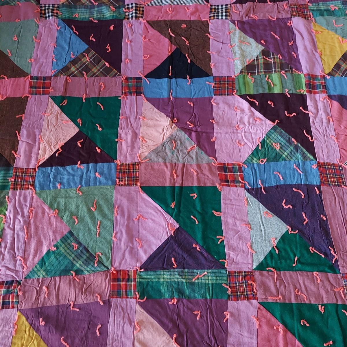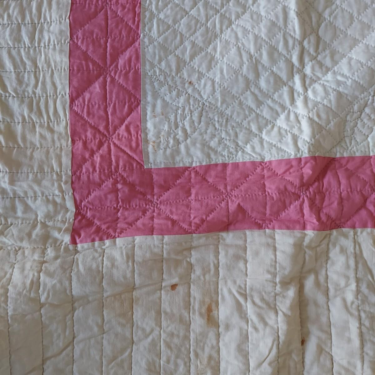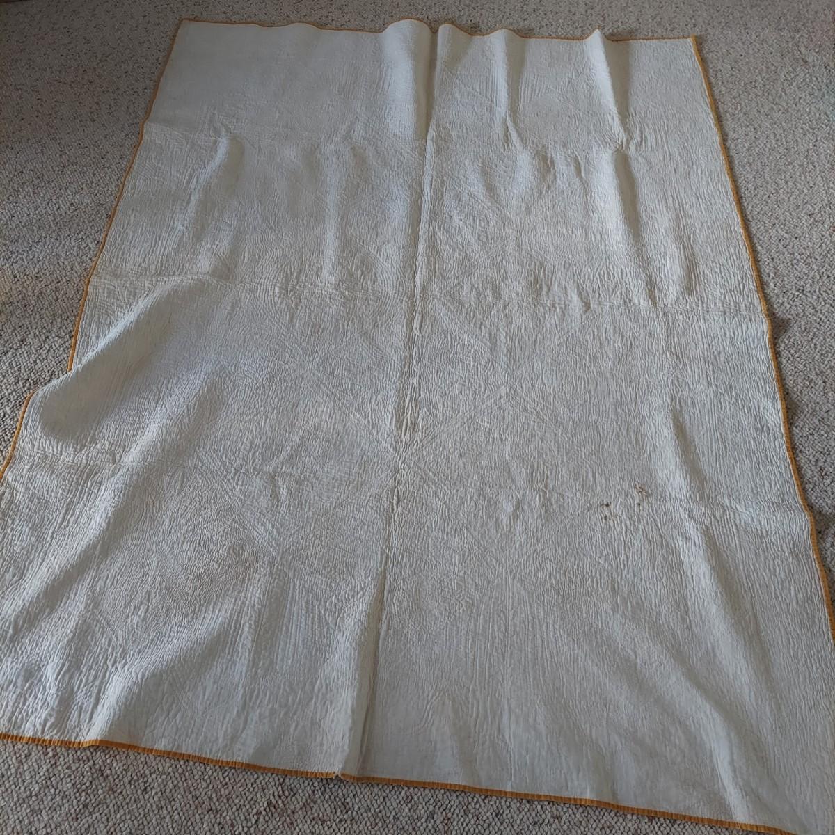 Metal quilt stand that measures 31” x 12” x 36"H. Also four quilts and one knitted blanket. Flowered quilt measures 64" x 84". Some condition issues on the quilts. Please see photos for details. Local Pickup Only