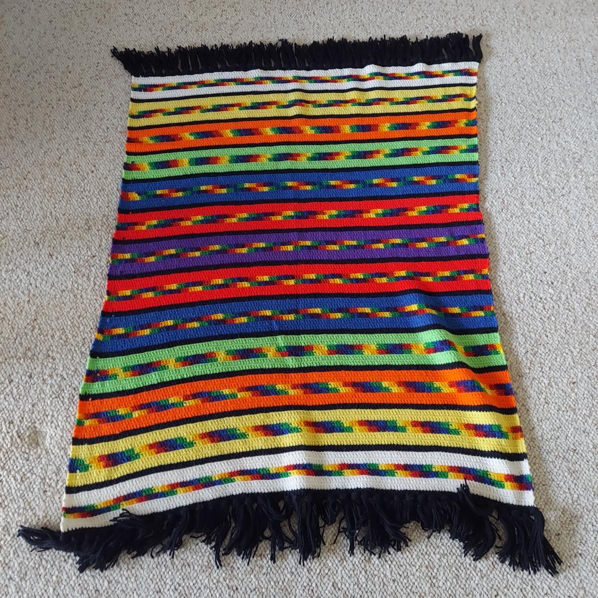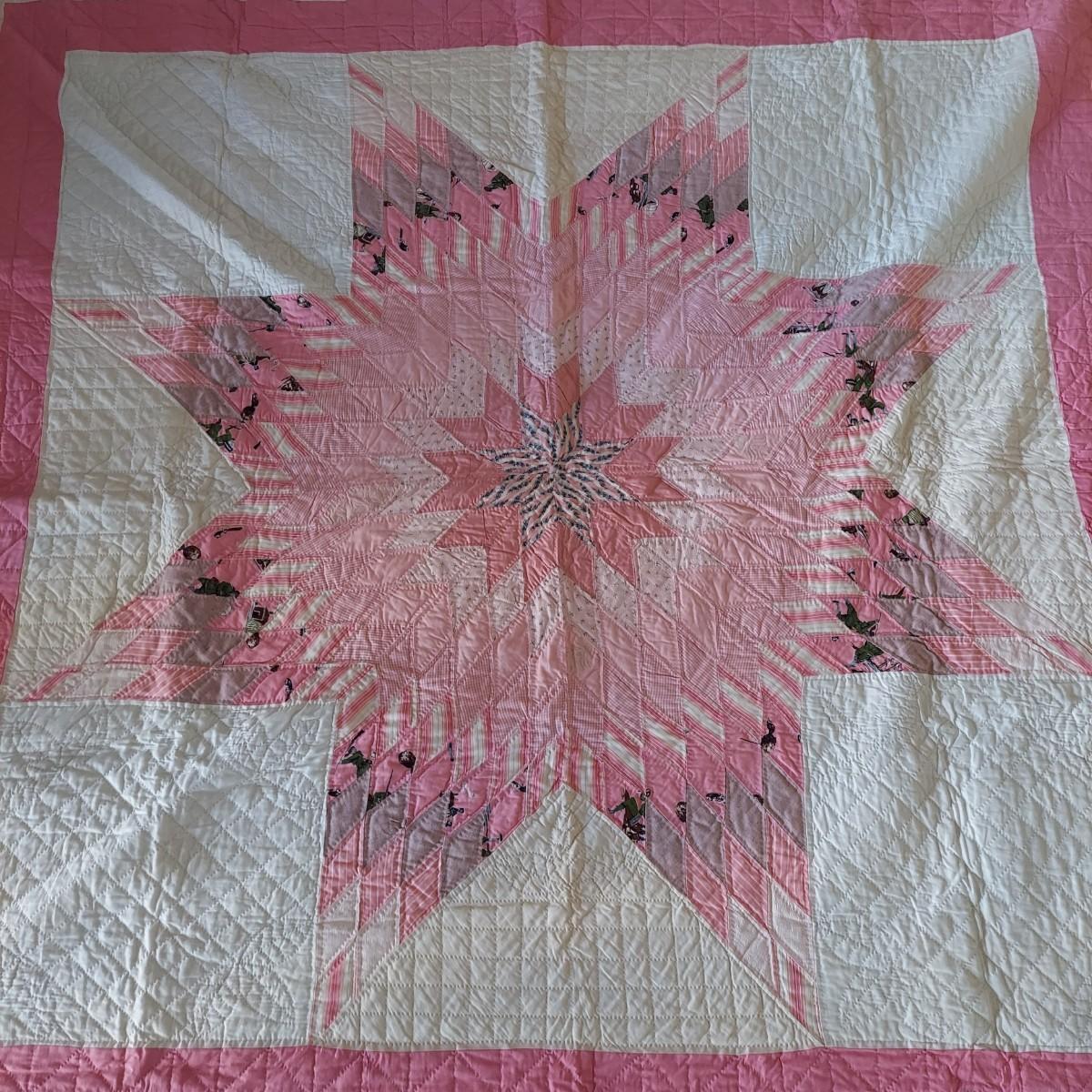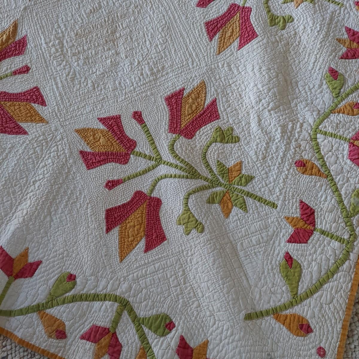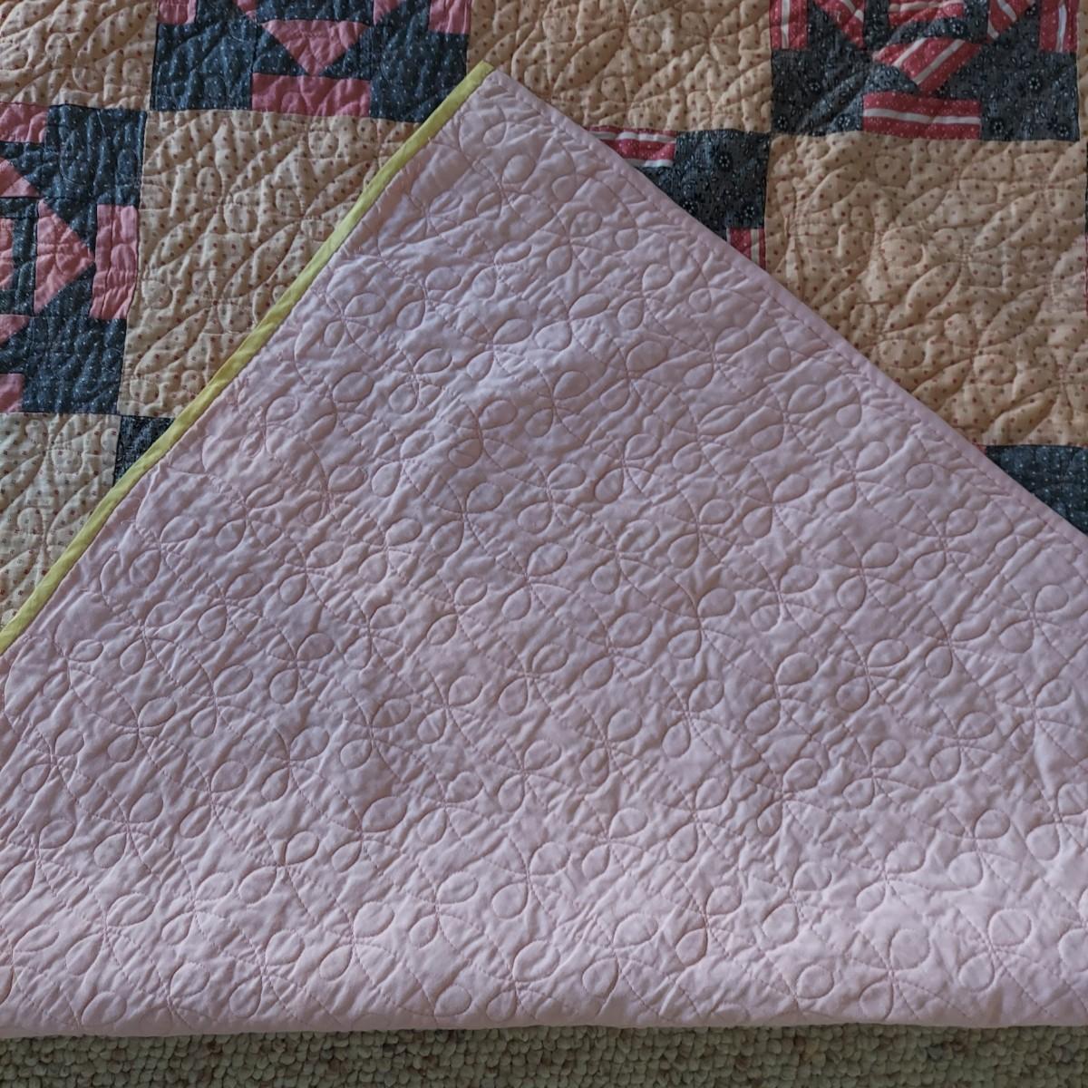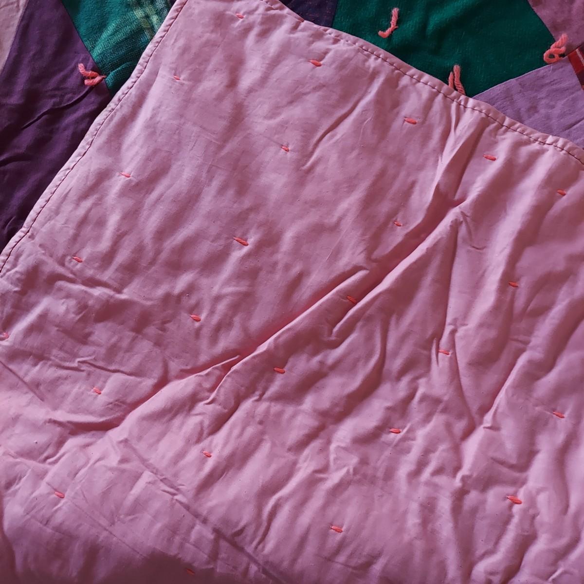 Metal quilt stand that measures 31” x 12” x 36"H. Also four quilts and one knitted blanket. Flowered quilt measures 64" x 84". Some condition issues on the quilts. Please see photos for details. Local Pickup Only