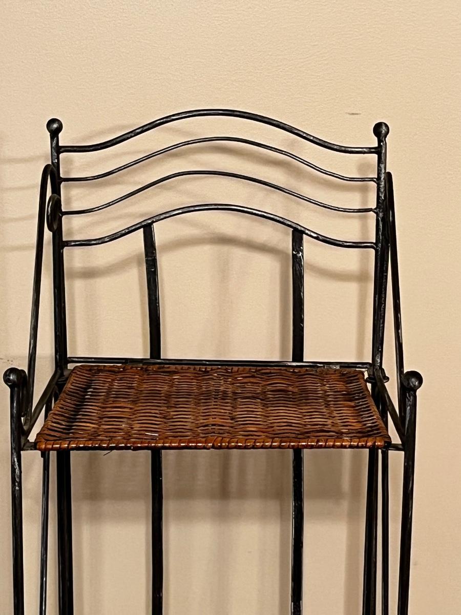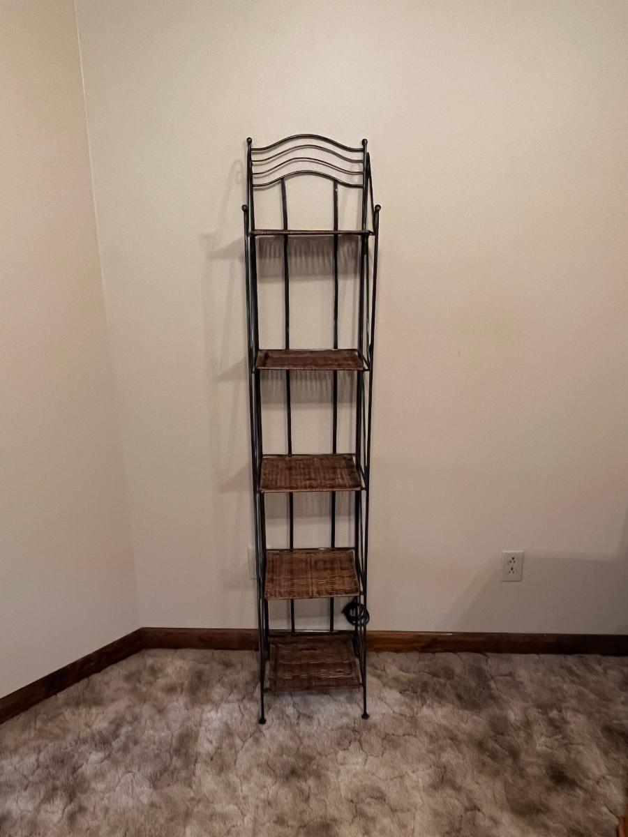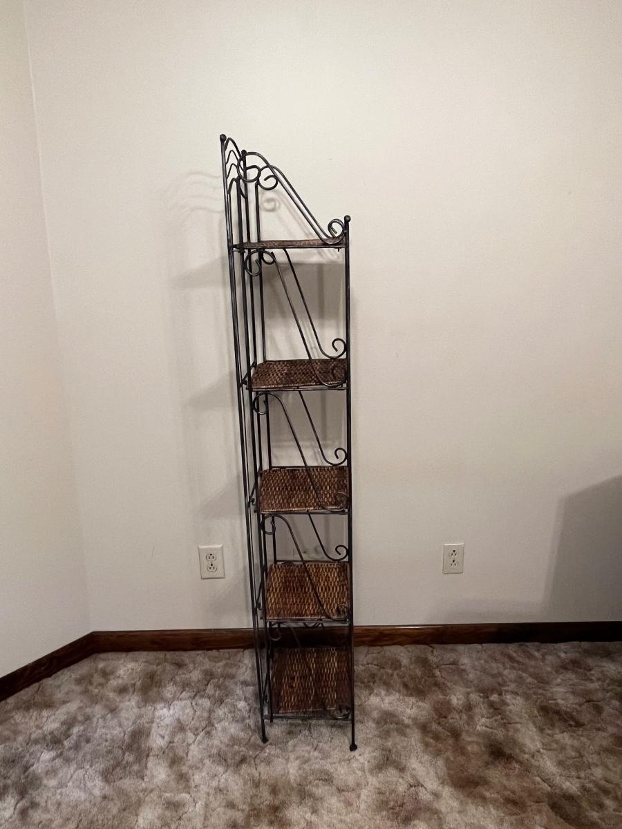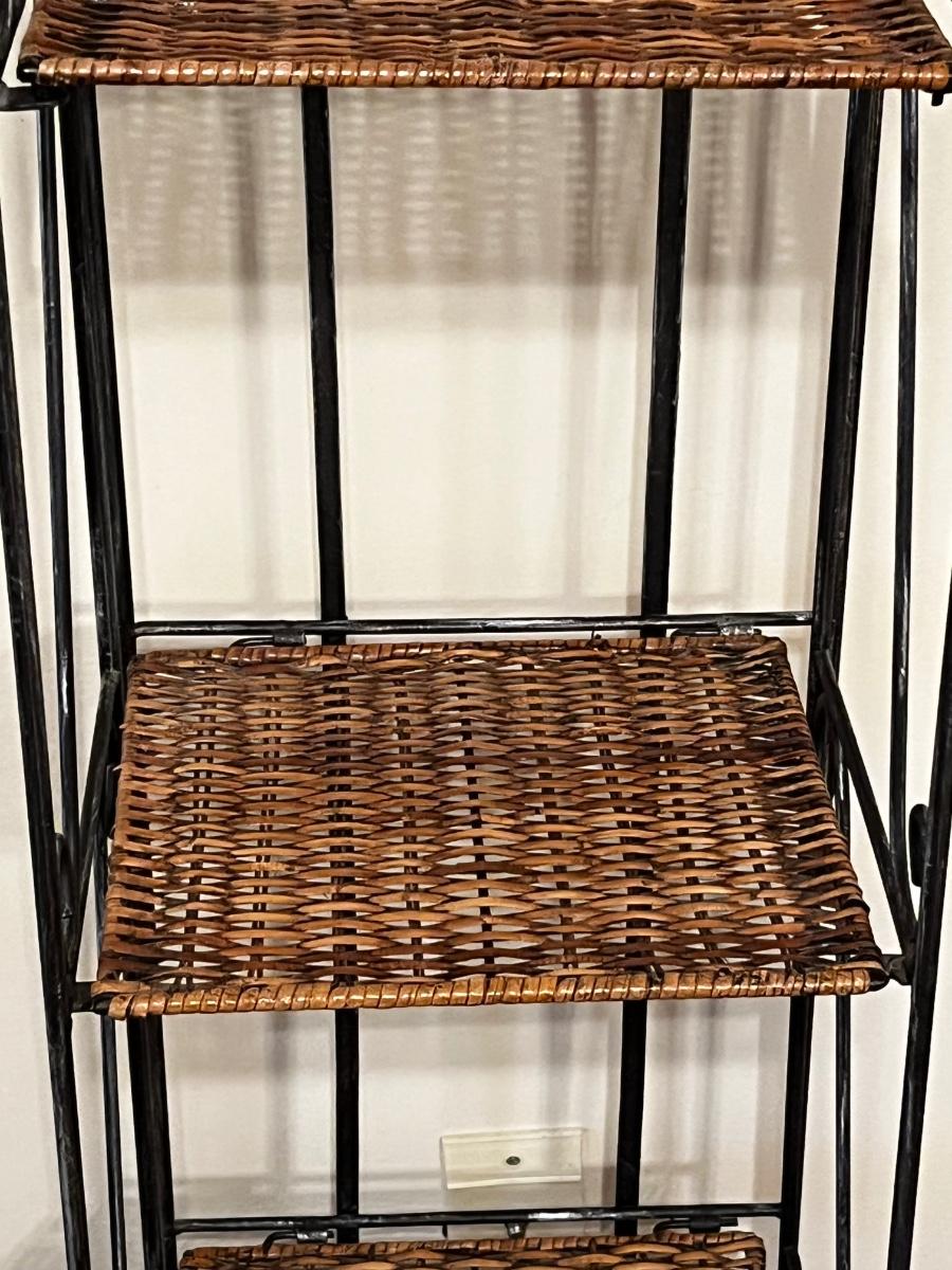 Five (5) Shelf ~ Black Metal Frame Stand With Wicker Shelves