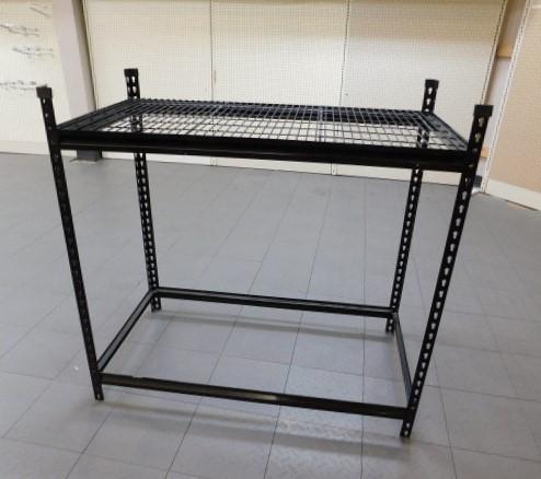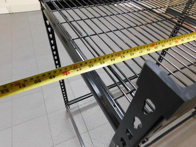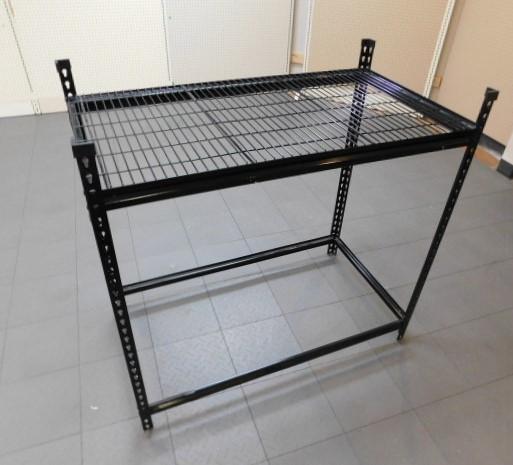 Metal Rack with Wire Shelf 46"x25"x44". Sturdy rack very clean and like new condition. Bottom frame could be filled in to provide second shelf for storage. Great for commercial or private application.