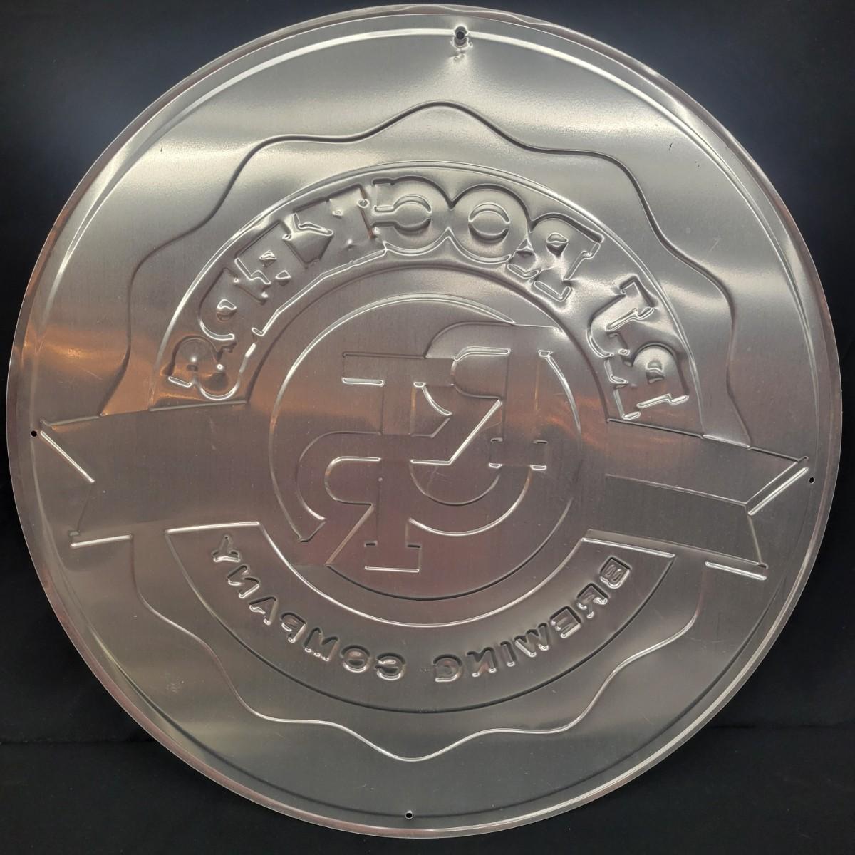 Black and white RJ Rockers Brewing Co sign. In good condition, but does have some minor scratches. See attached pictures. Measures approximately 24" round. Shipping available