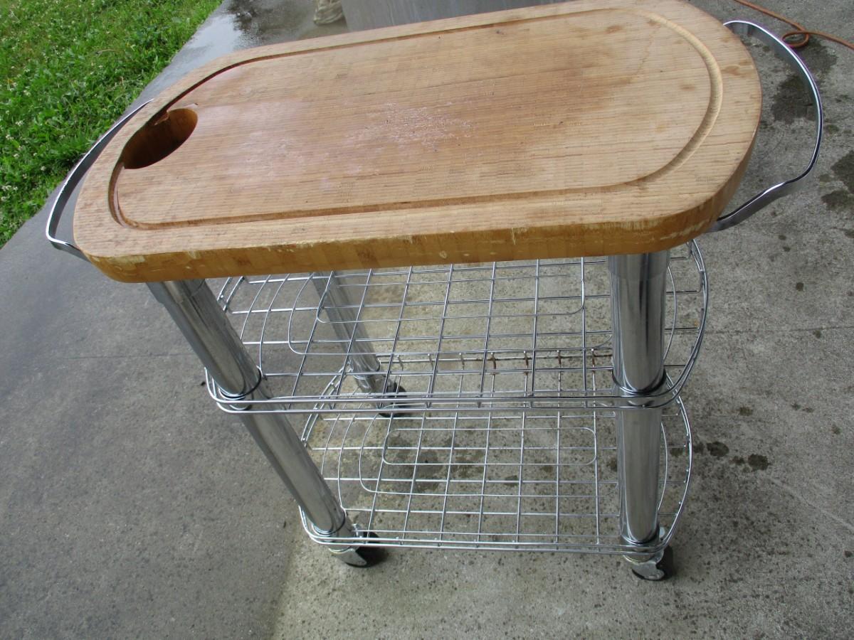 Metal Rolling Cart With Wood Top