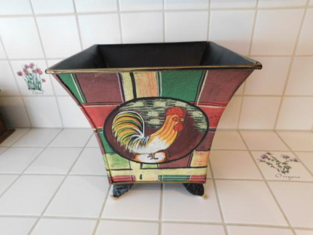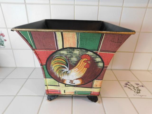 Metal Rooster Decor Planter or Waste Receptacle 10"x10"