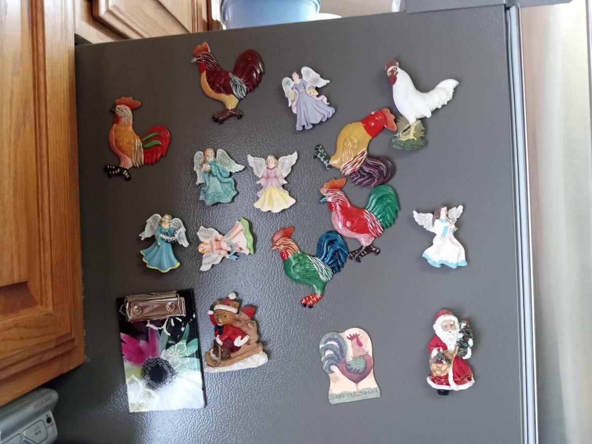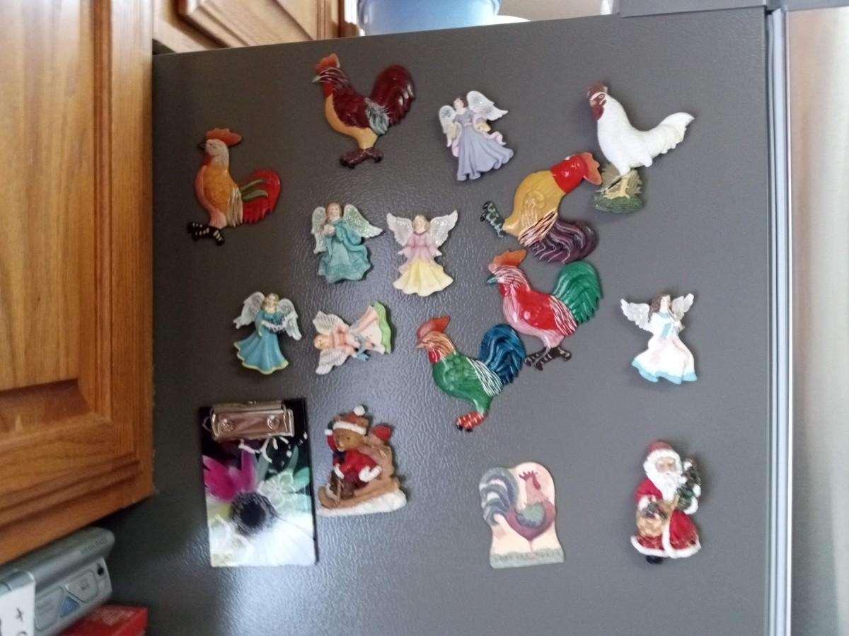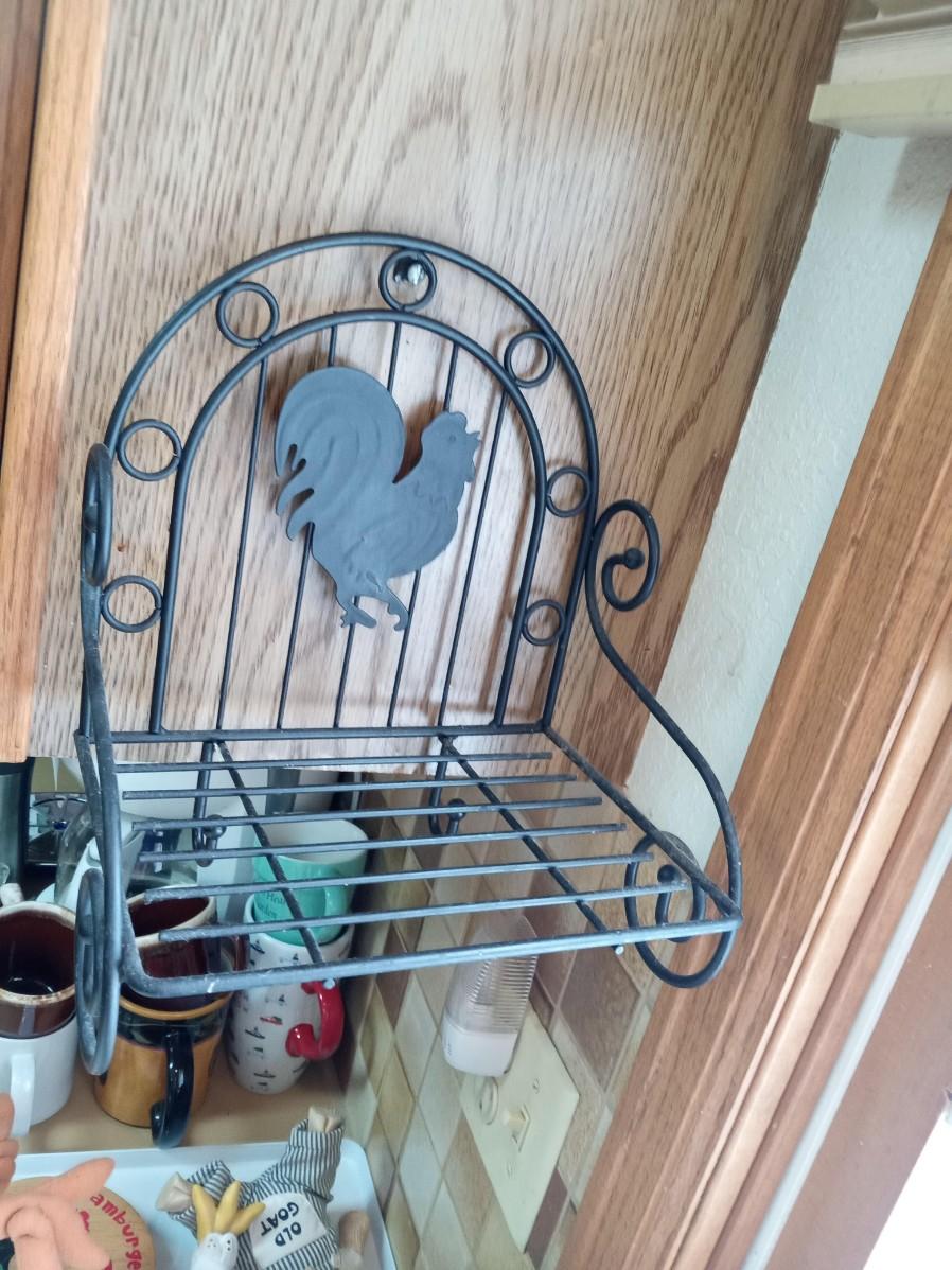METAL ROOSTER SHELF AND HANGER, FRIDGE MAGNETS TOO