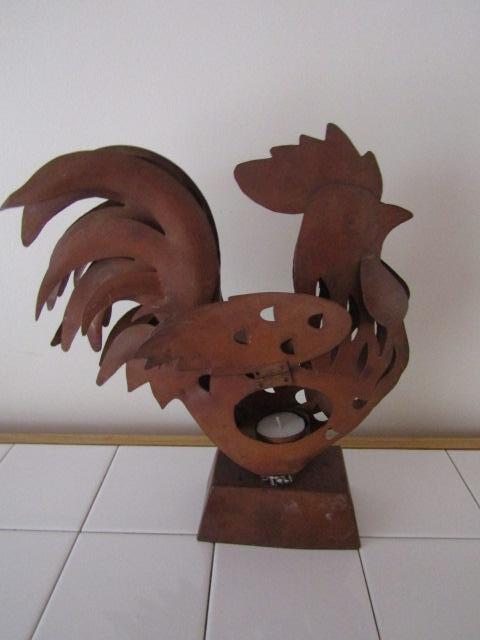 Metal Rooster Tealight Candle Holder 11" x 10"