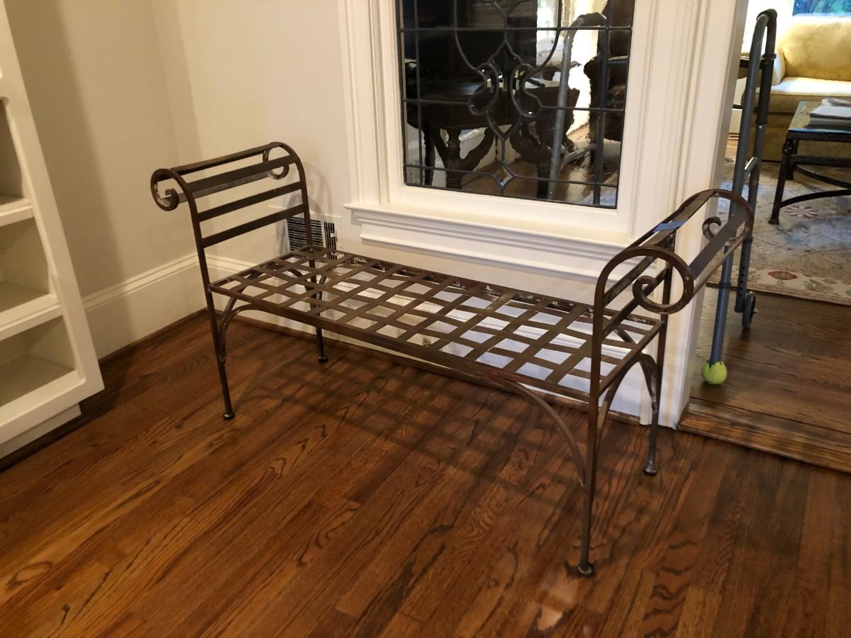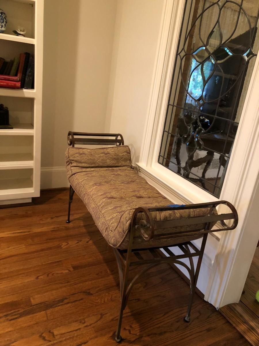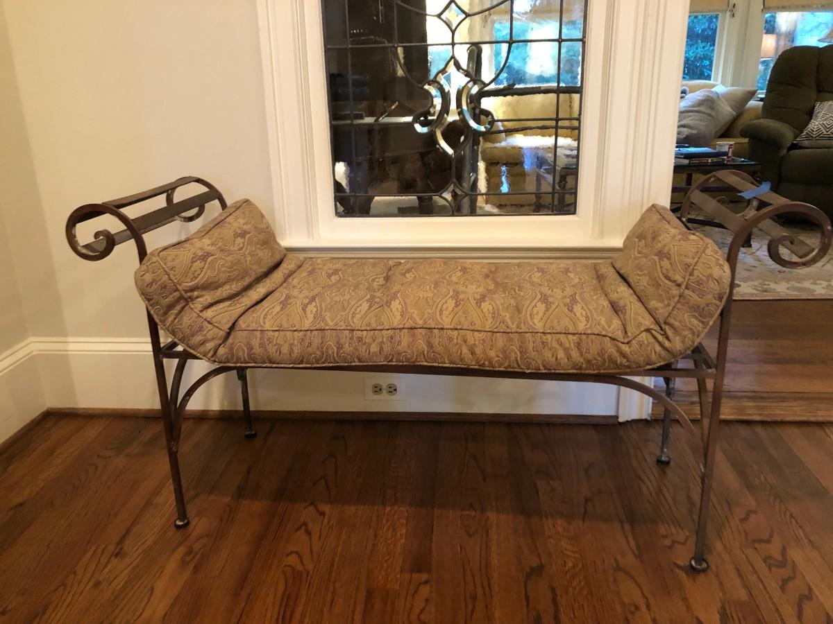 Metal Scroll Bench with Cushion - Item Must be Scheduled for Pickup.