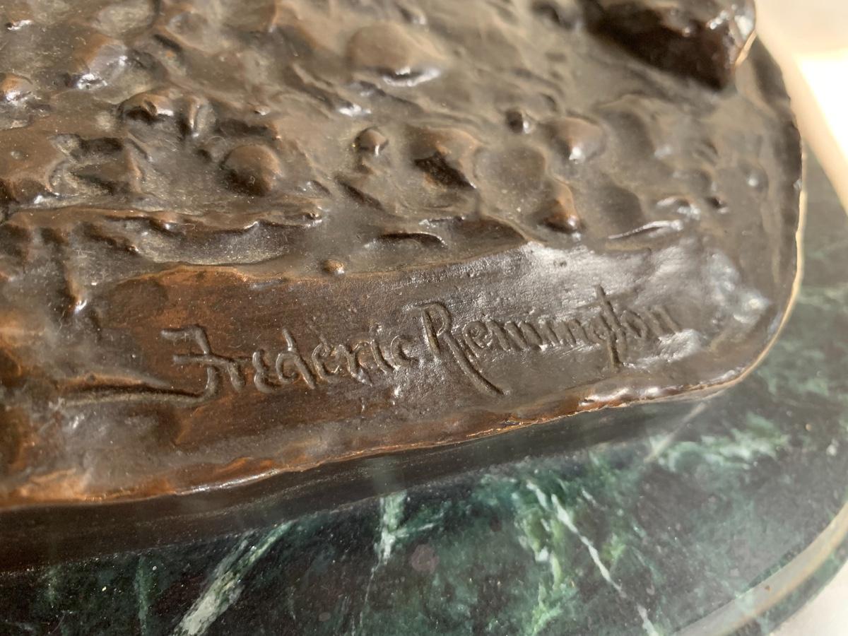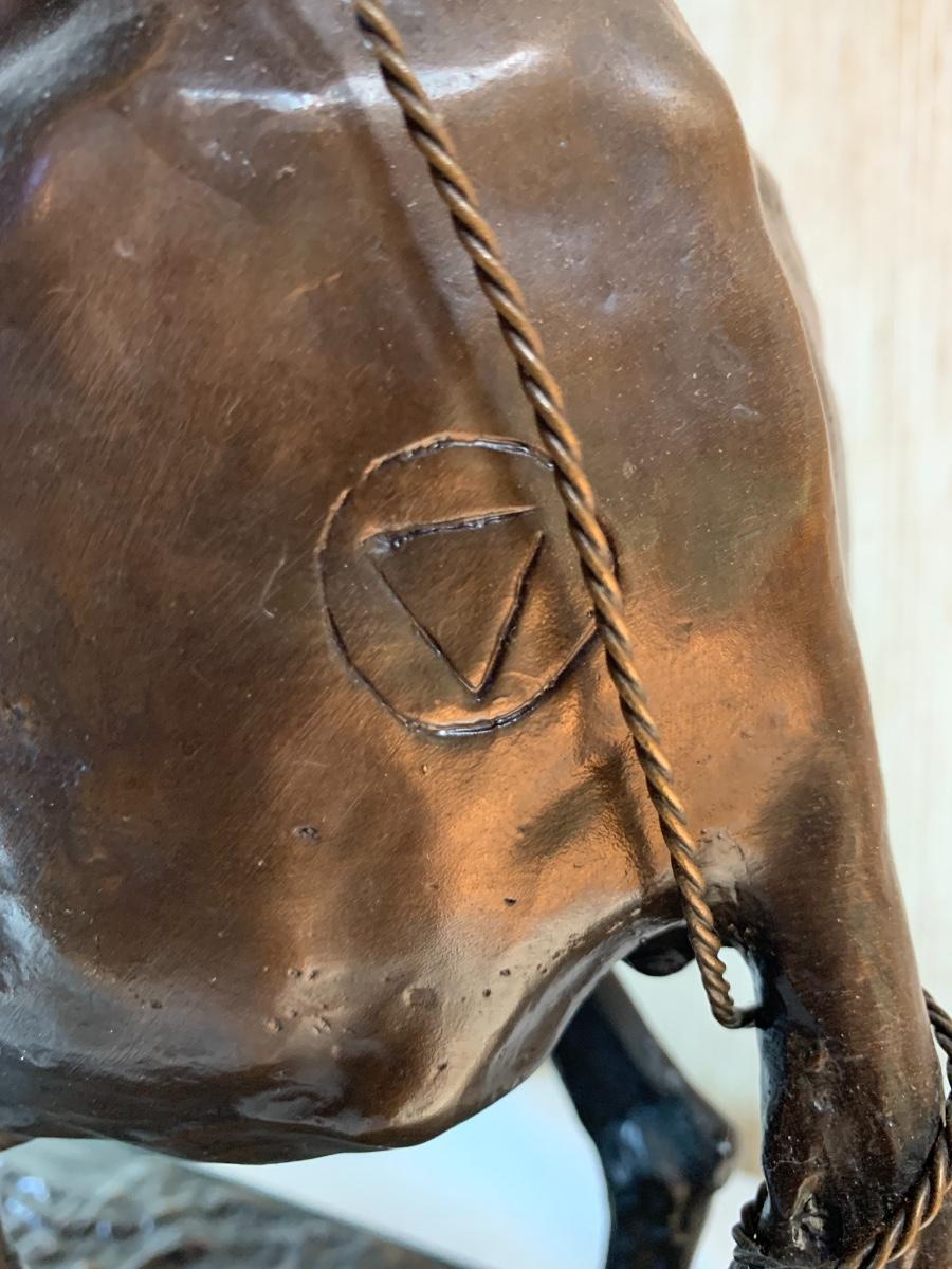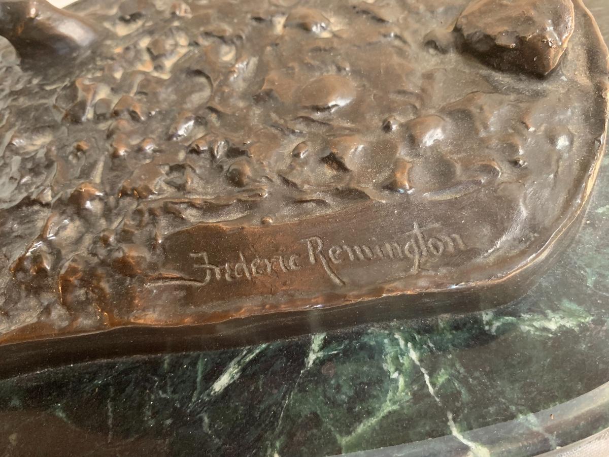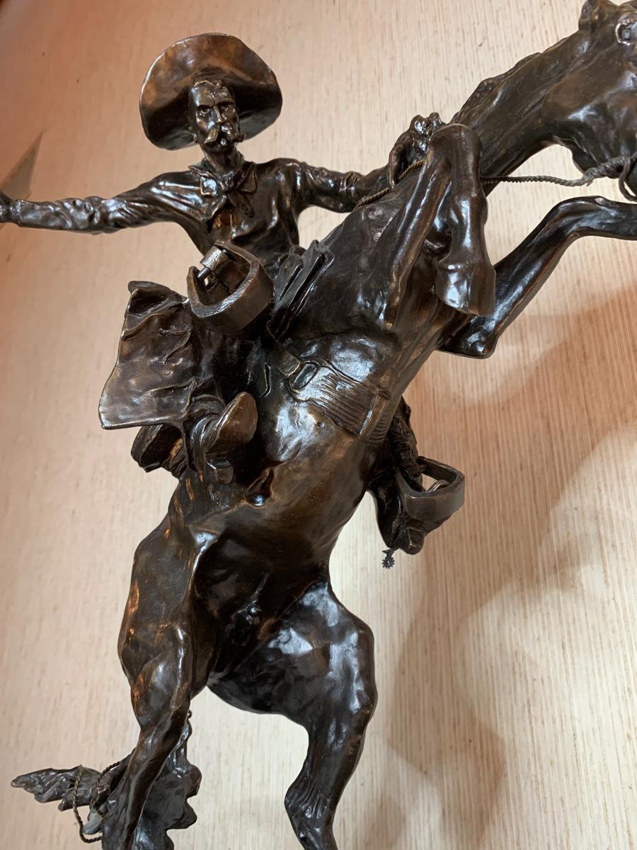 Cowboy on bucking horse. Dark brown on dark green marble base.