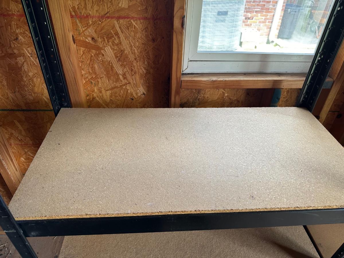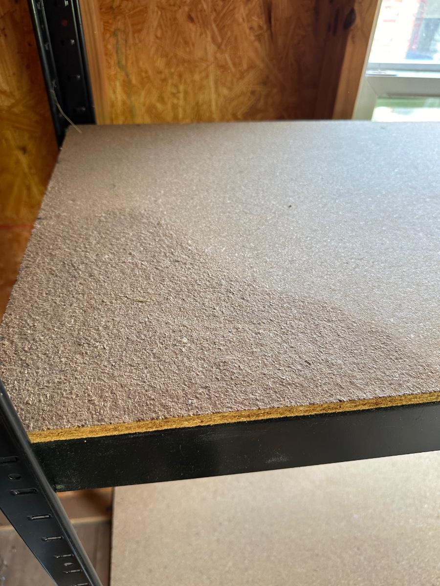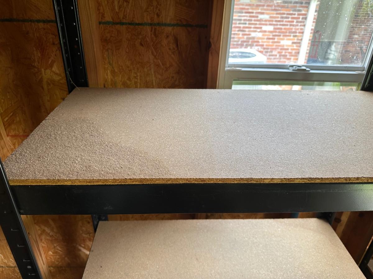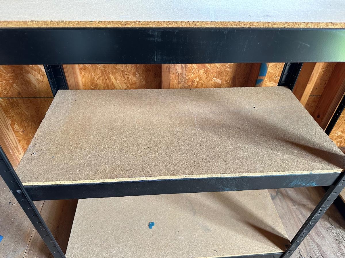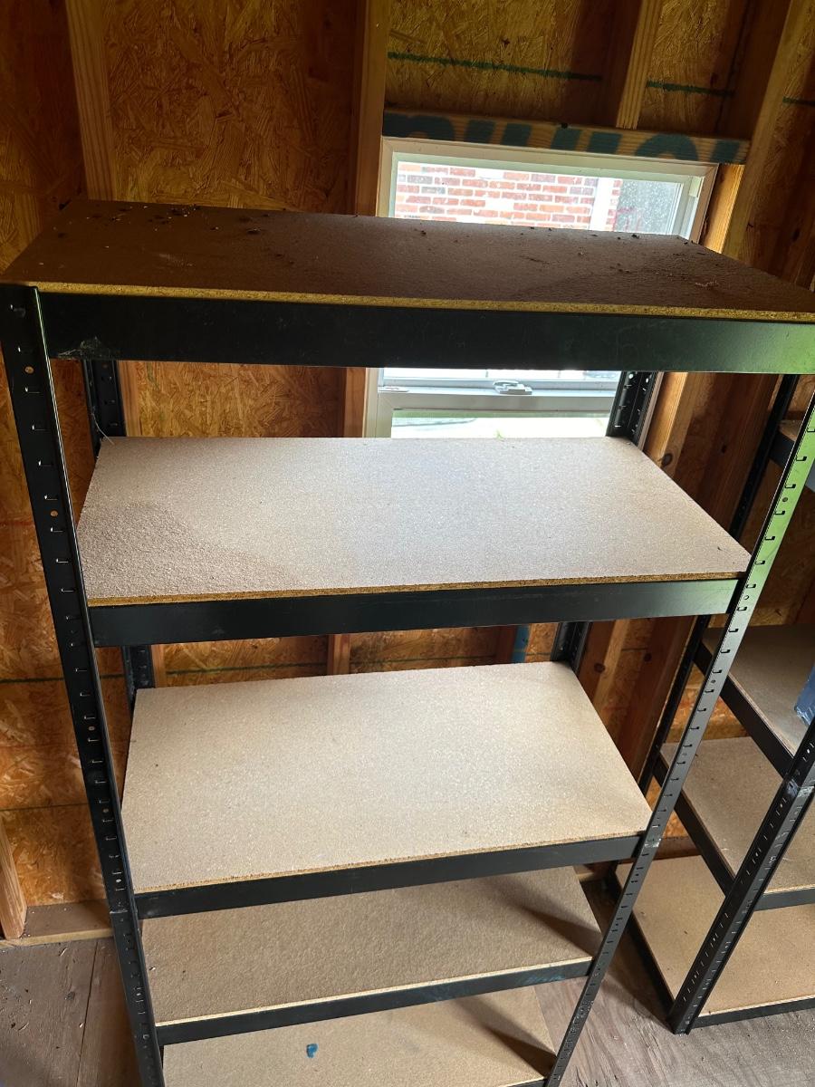 One shelf has some slight water damage