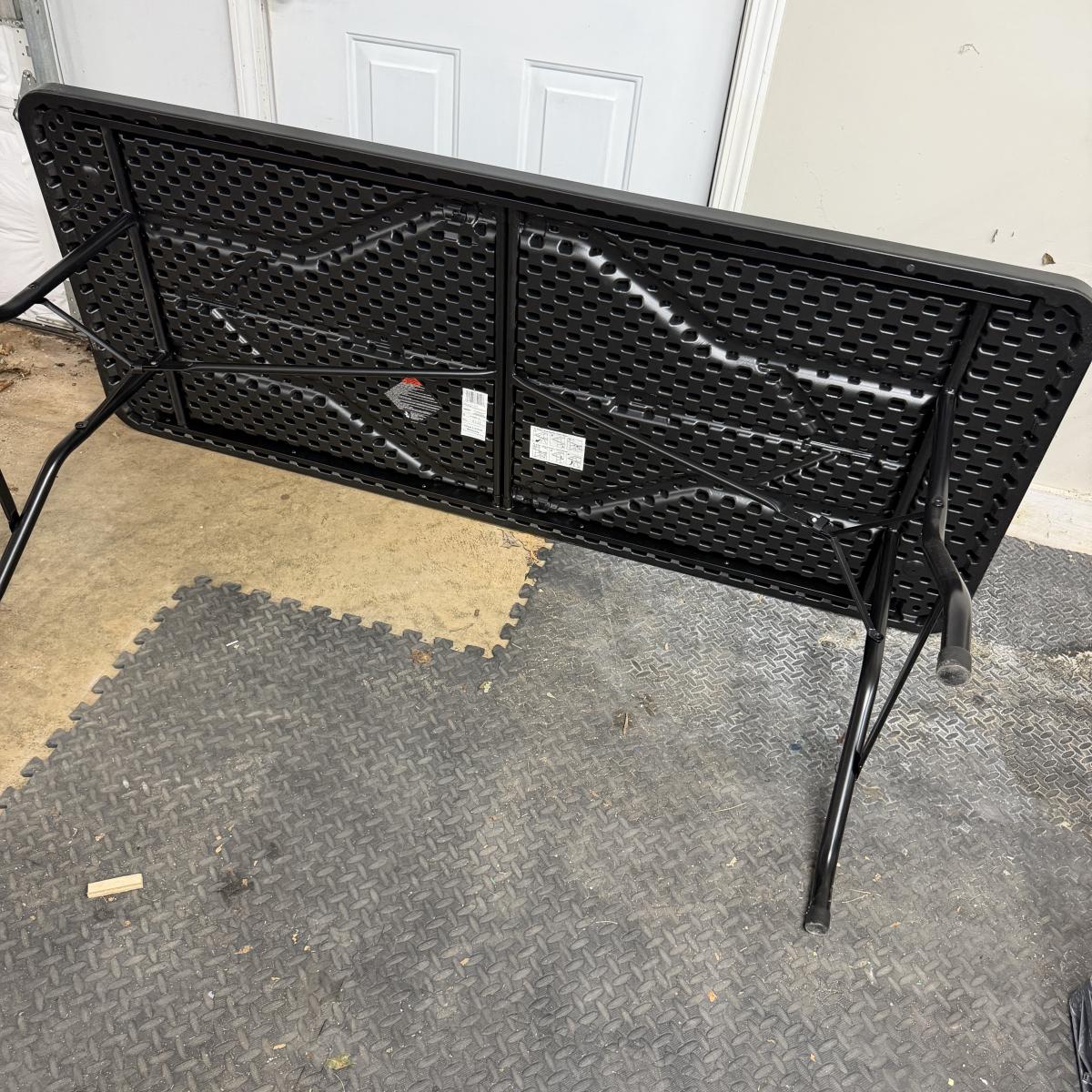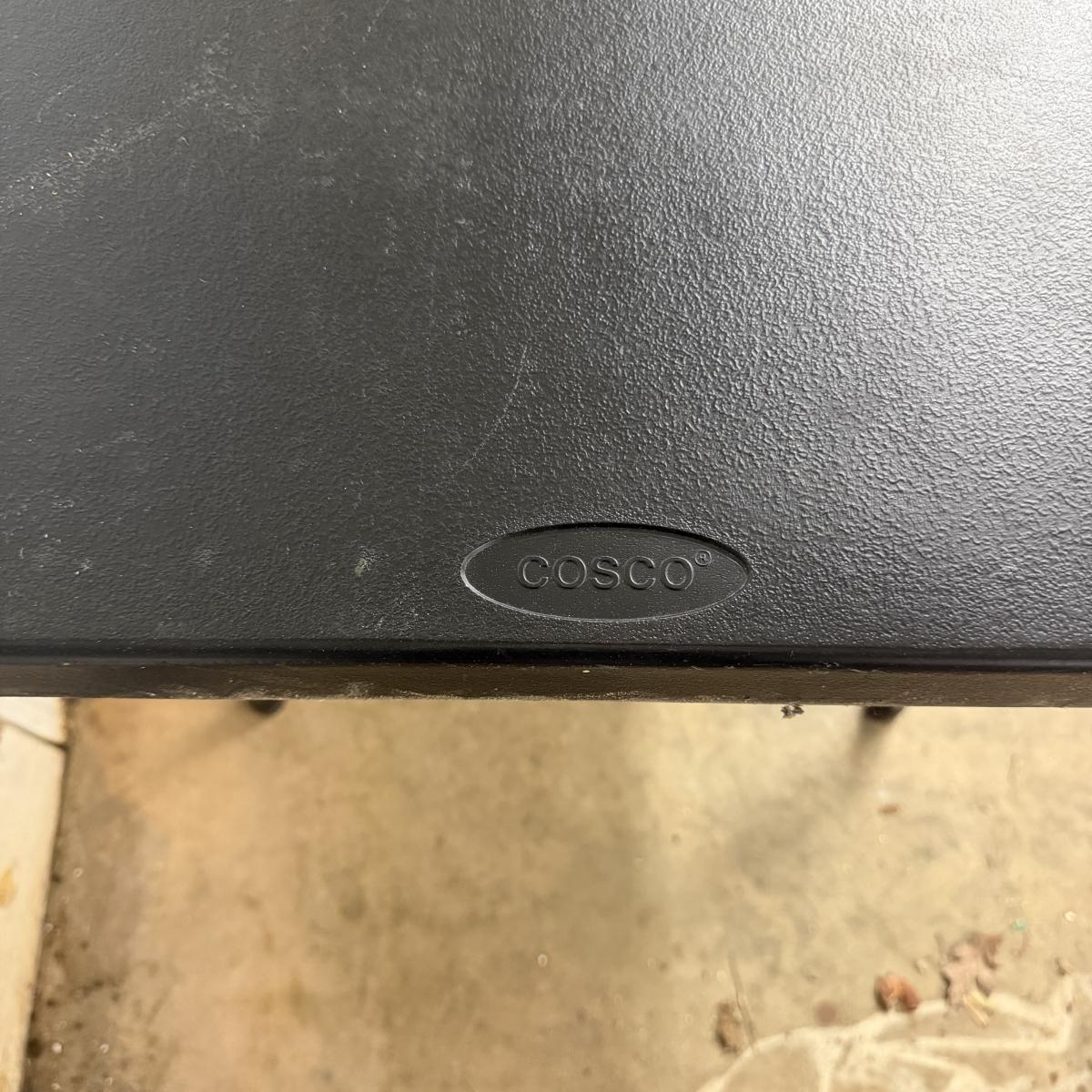 Lot includes a metal shelving unit that measures 36” x 17” x 66”H. Also includes a plastic shelving unit that measures 33” x 14” x 56”H, Cosco folding plastic table that measures 73” x 30” x 29”H and two metal storage systems with three drawers each. Storage system measures 22” x 21” x 29”H.