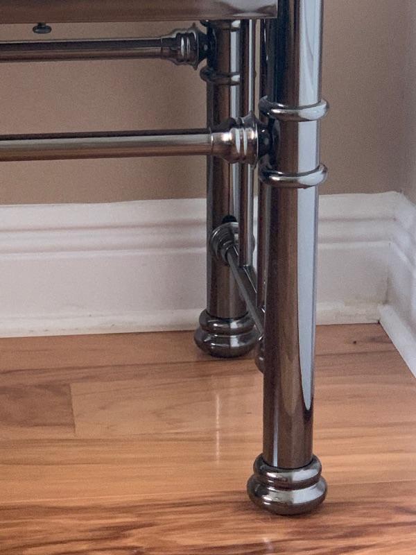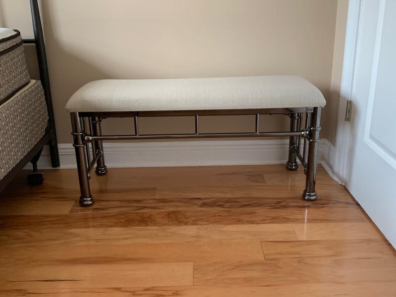 Shiny Bronze Color Metal Bench with Upholstered Seat = Excellent